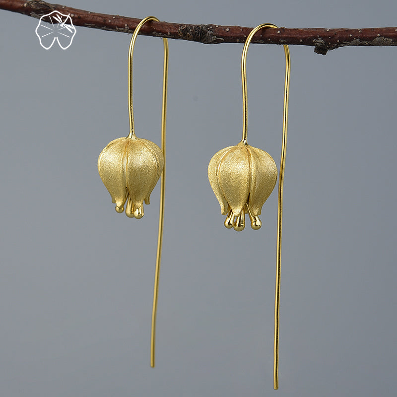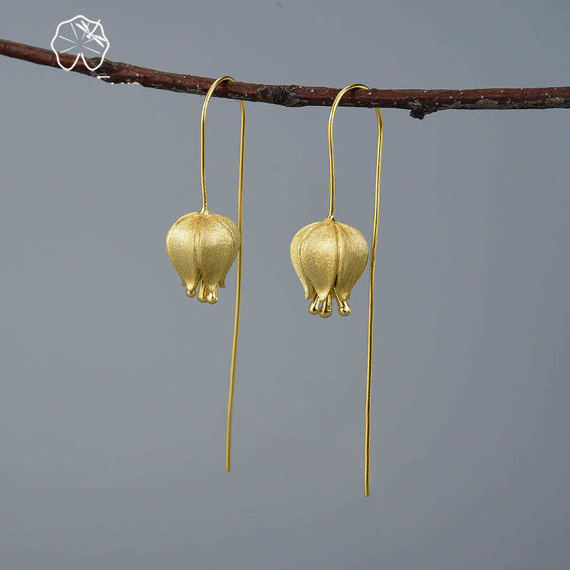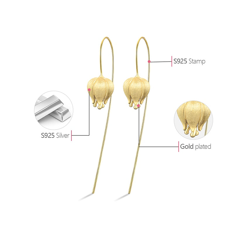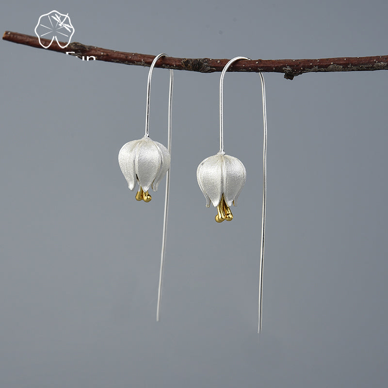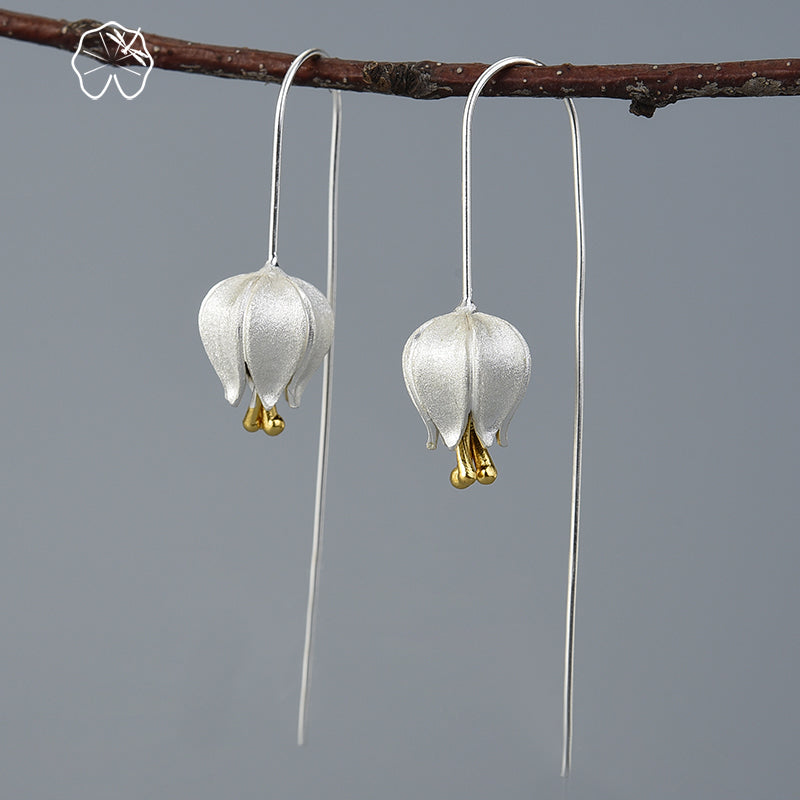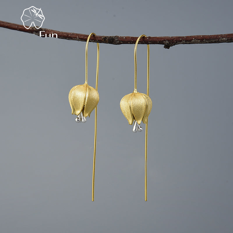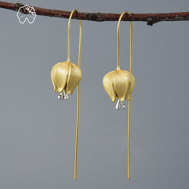 Pendientes de moda - Pendientes colgantes de tulipán con amor eterno, plata de ley 925 auténtica, joyería fina hecha a mano para mujer