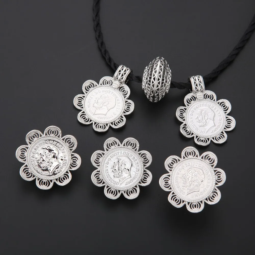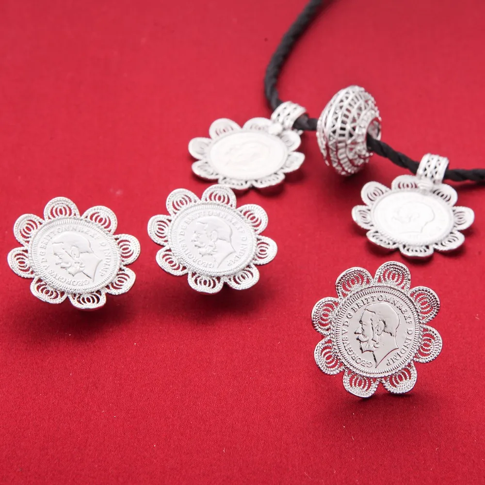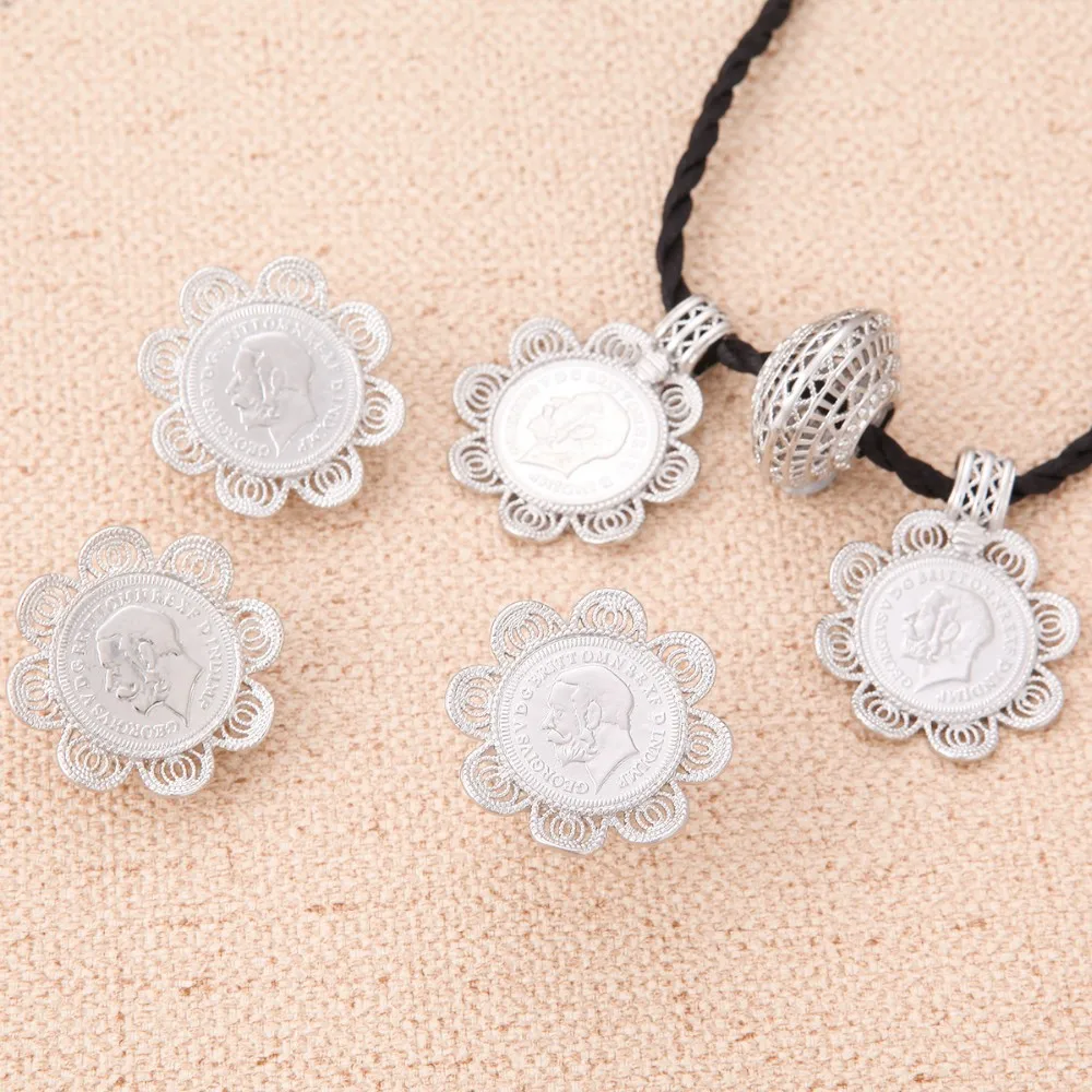 Conjuntos de joyería nupcial: Cruz etíope con moneda grande, oro de 22 quilates, estilo africano, eritreo, Habesha, para novias.