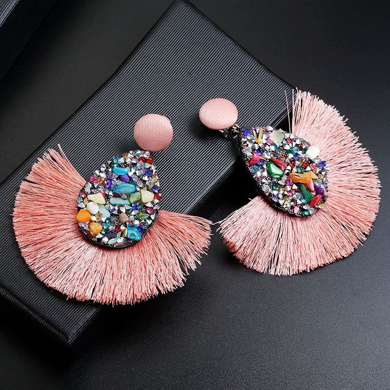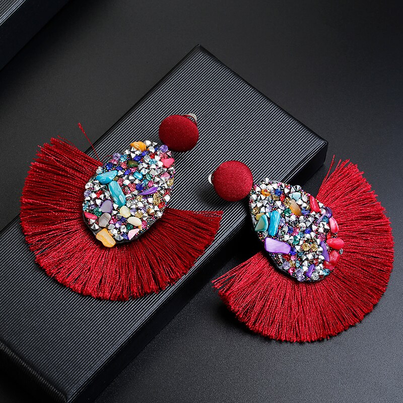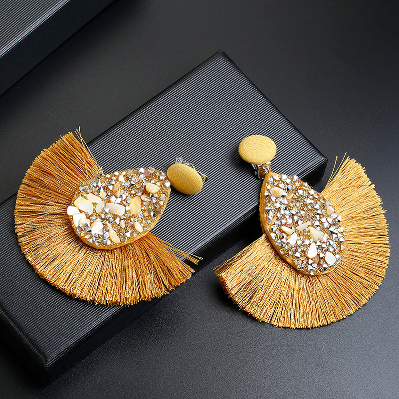 Pendientes de moda - Pendientes étnicos bohemios con borlas y clip sin piercing para mujer, pendientes de fiesta, pendientes con clip, joyería