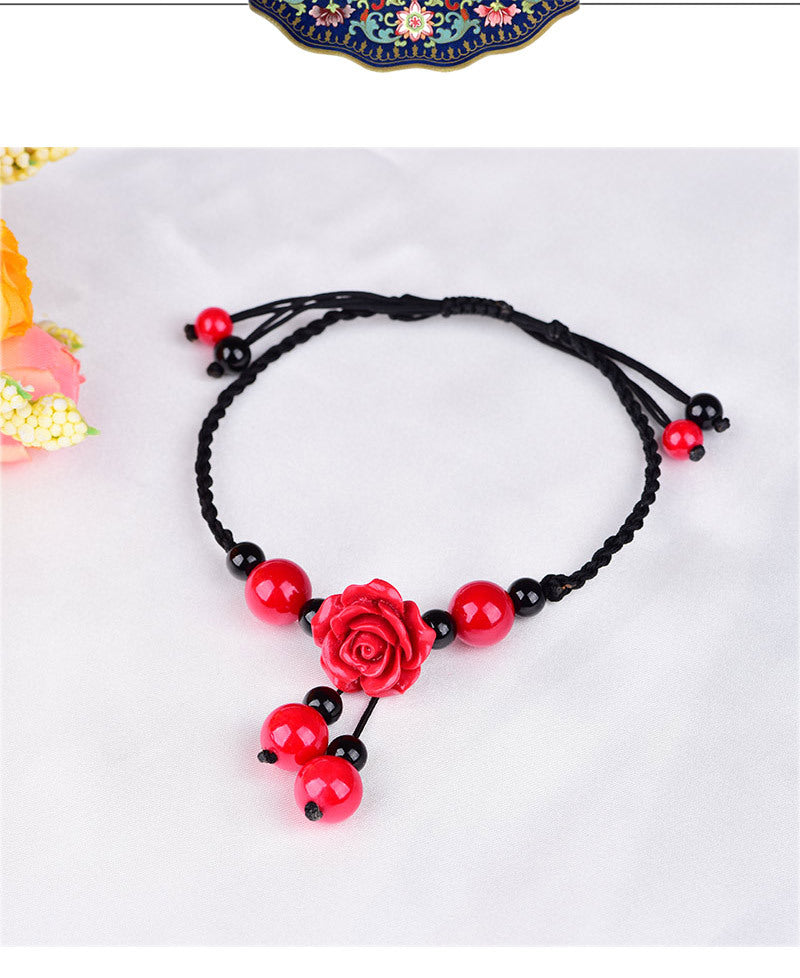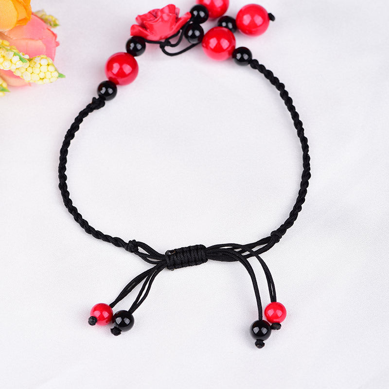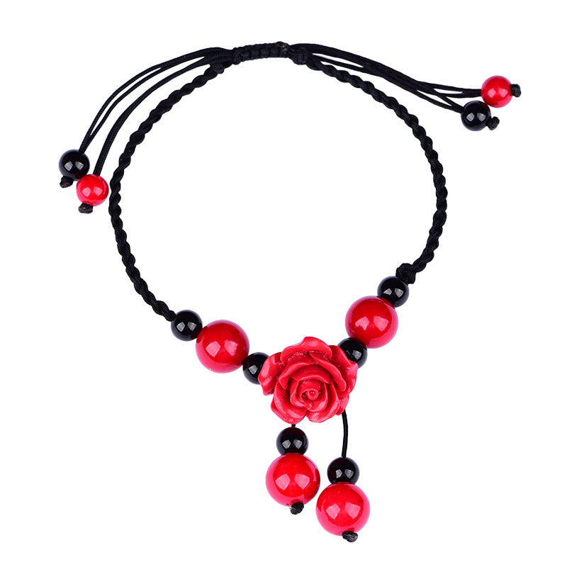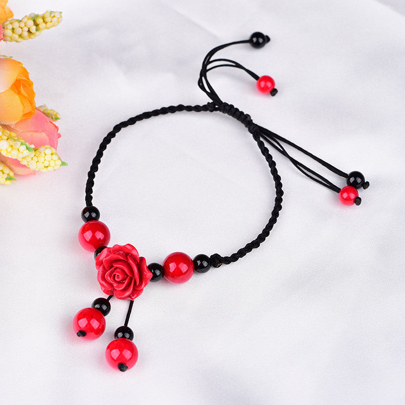 Tobilleras de estilo étnico tejidas a mano, de tamaño ajustable, con hilo encerado, delicada piedra de color rojo, flor de cinabrio clásica, joyería retro.