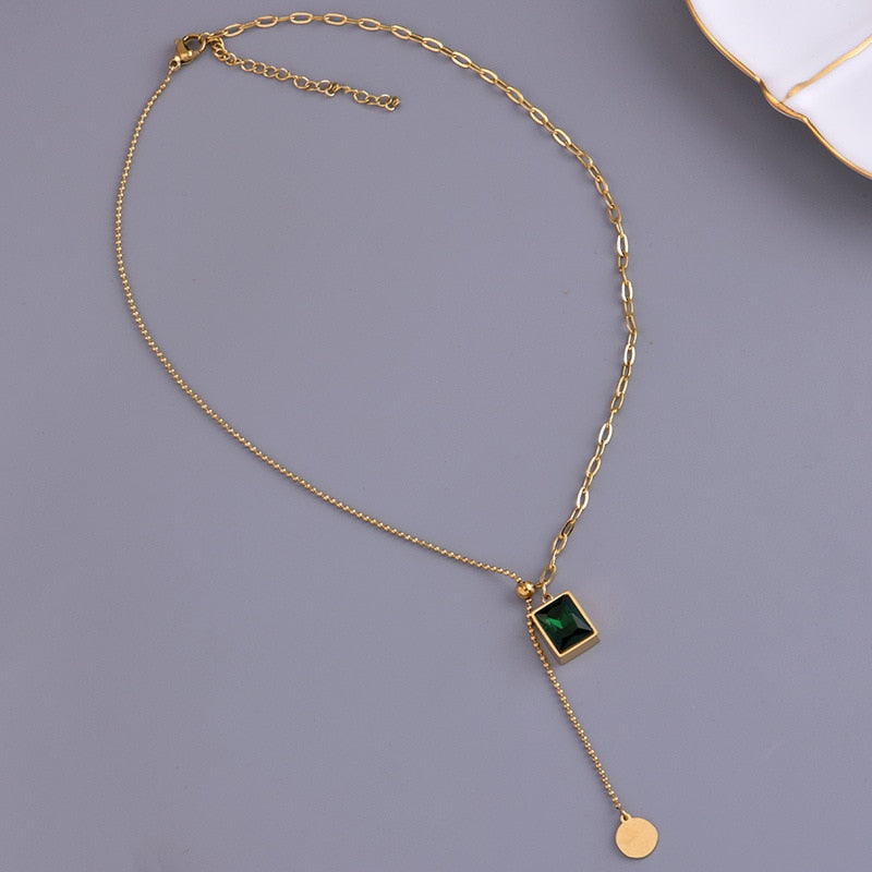 Collar de acero inoxidable dorado con circonitas cúbicas de lujo europeas y americanas.