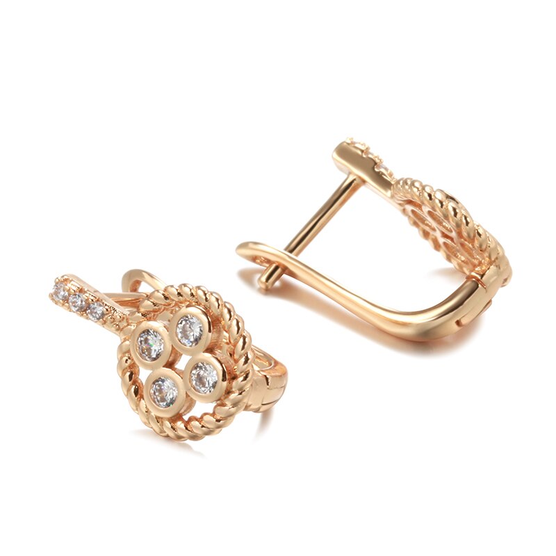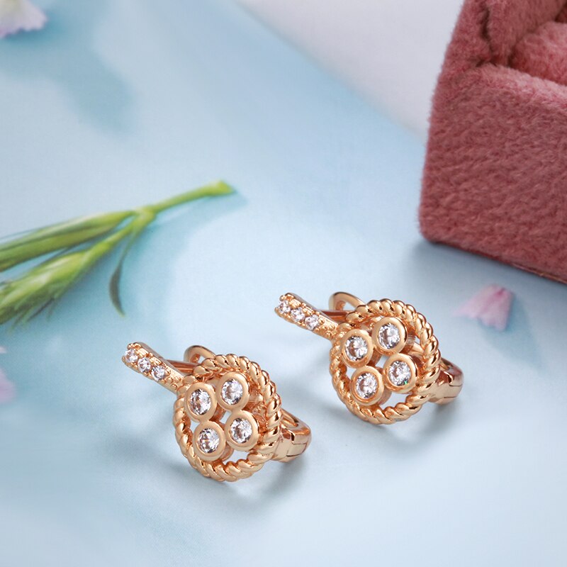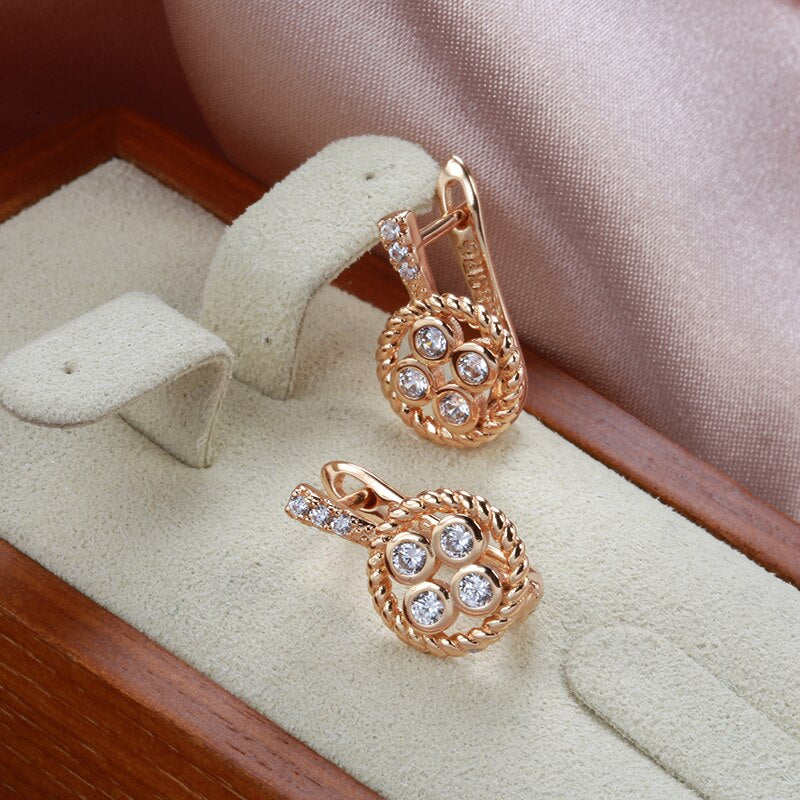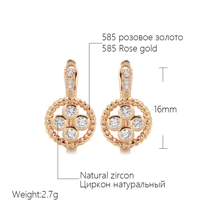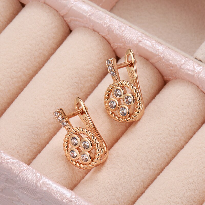 Joyería de oro 585: elegantes pendientes de circonita retorcida europea con incrustaciones de círculo hueco y circonitas pequeñas, joyería gótica de moda, pendientes con personalidad para bodas y fiestas.