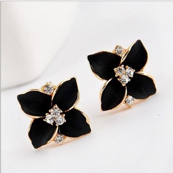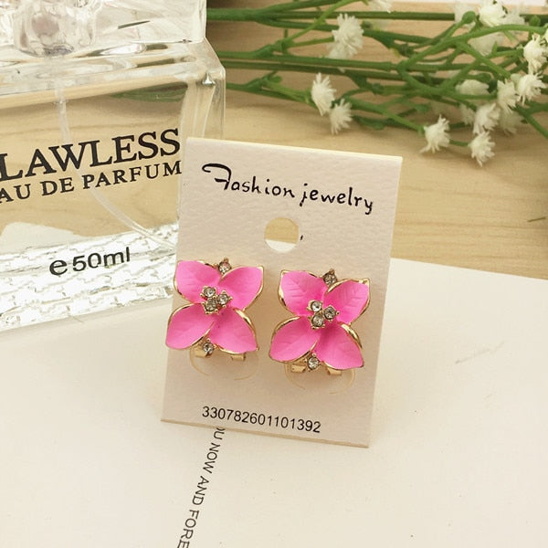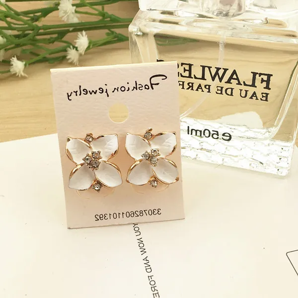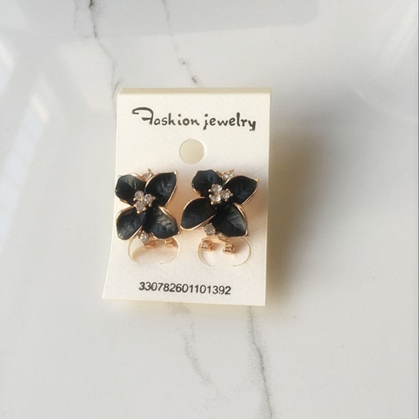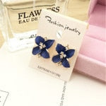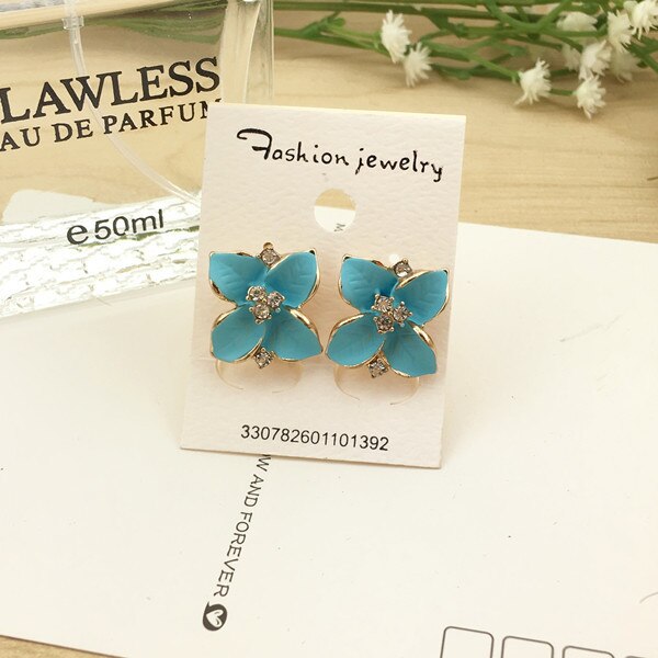 Pendientes de moda: nuevos y exquisitos pendientes de camelia para mujer, moda coreana, azul real, tridimensionales, con clip para la oreja esmerilado.