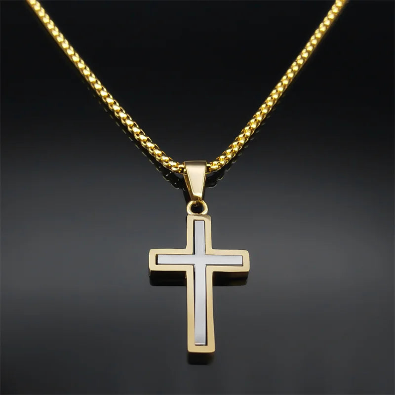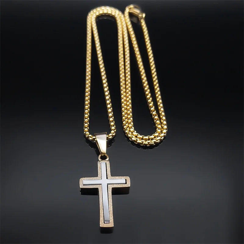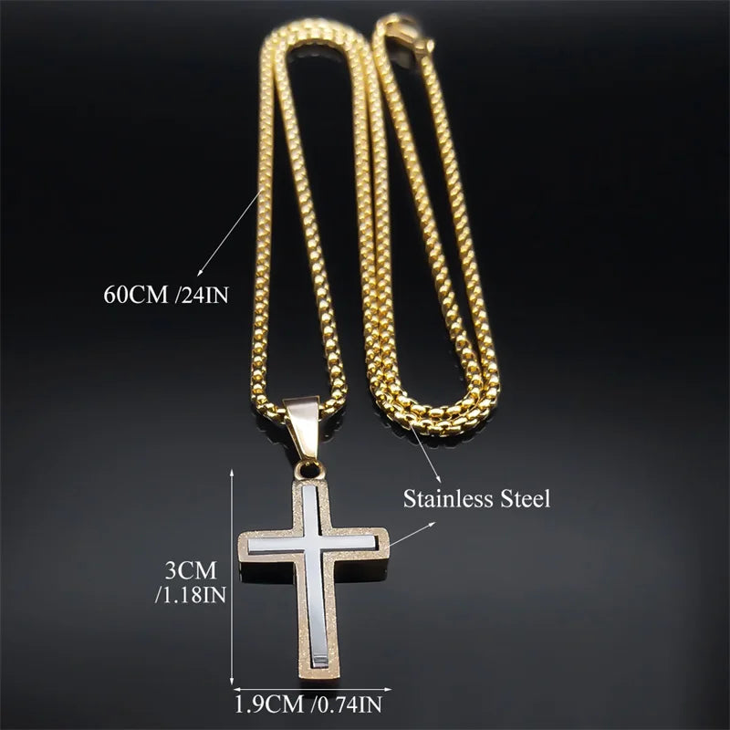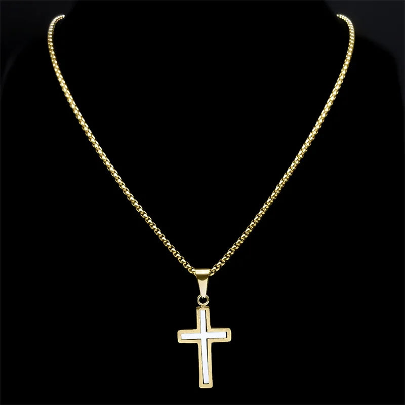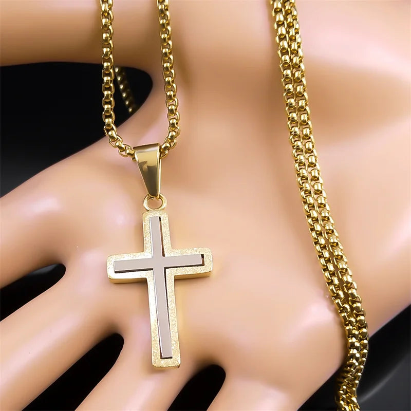 Exquisito collar con colgante de cruz para mujer y hombre, de acero inoxidable, color dorado, cadena religiosa de Jesucristo, joyería.