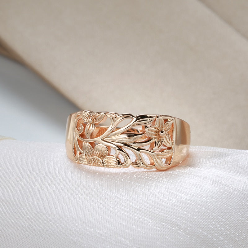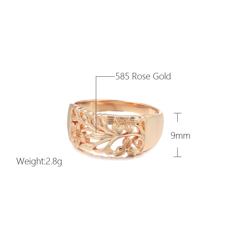 Joyería de oro 585: Exquisitos anillos de oro 585 con flores huecas en relieve para mujer, joyería geométrica de moda para dedo, amuleto para fiesta de boda, regalo de anillo dorado.
