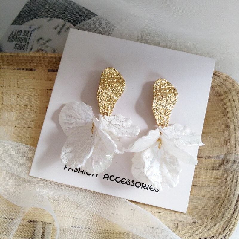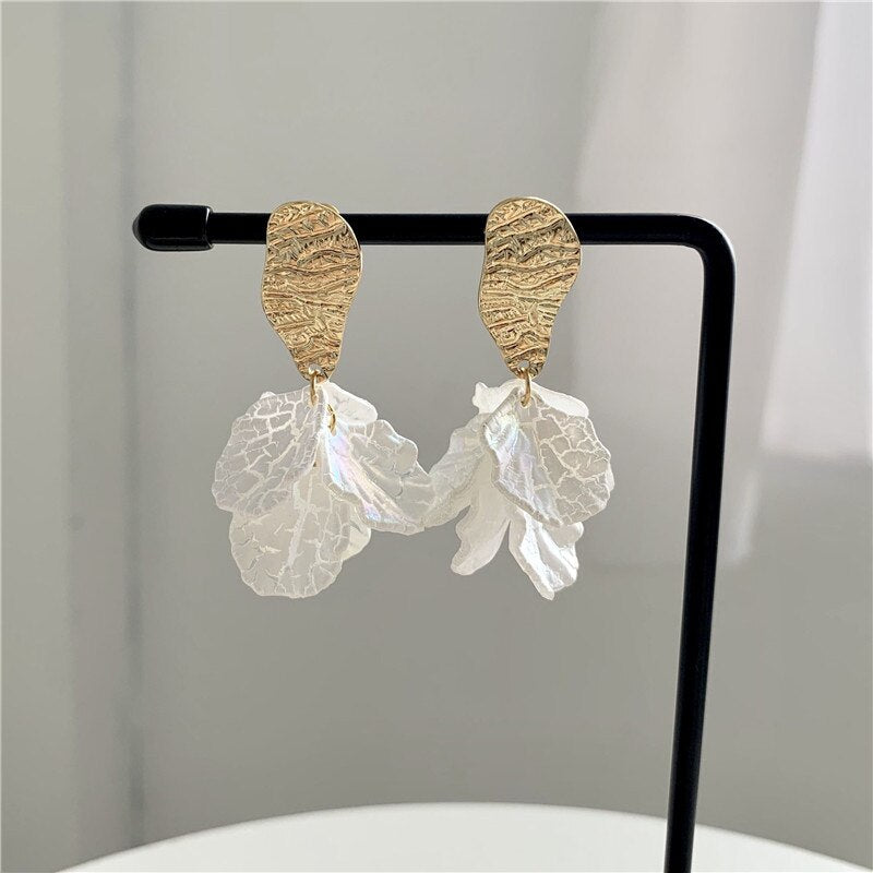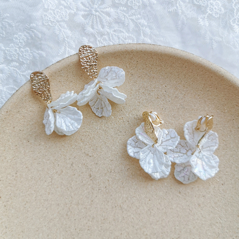 Pendientes de moda - Oferta coreana: Pendientes de clip con pétalos acrílicos pintados, sin perforaciones, con temperamento de hada para mujer.