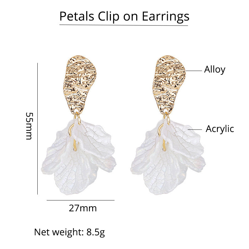 Pendientes de clip con pétalos pintados de acrílico de moda, sin perforaciones.