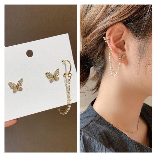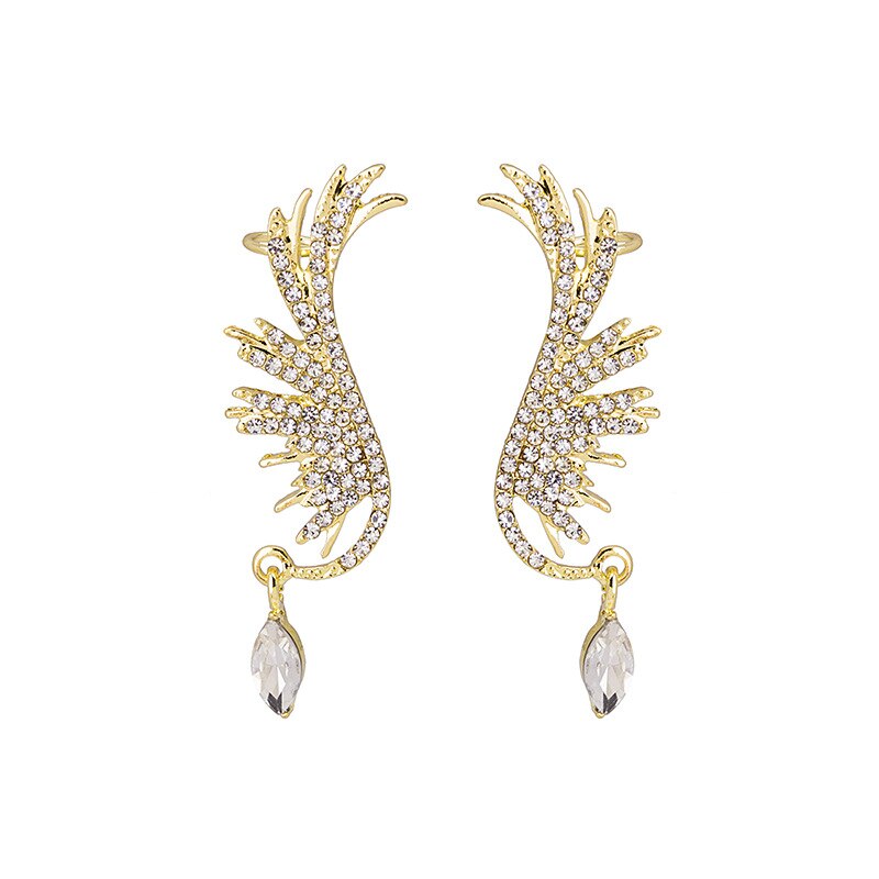 Pendientes de moda: aretes de ala de ángel con diamantes de imitación, populares pendientes de cristal transparente con forma de hoja, regalos para mujer, pendientes de clip para fiesta, estilo punk.