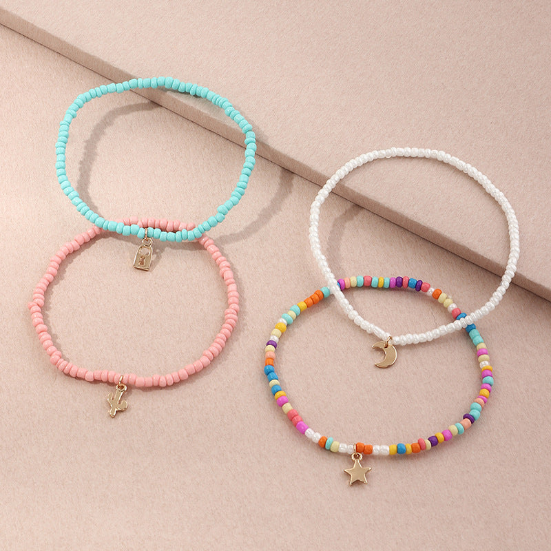 Tobilleras - Gargantilla de cuentas de moda para mujer, estilo bohemio, con estrellas, luna y candado, colgante de sarampión de color, cadenas para los pies, joyería para niñas de verano
