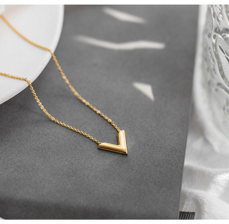 Collar con colgante de letra V de marca de moda de oro 585 para mujer, de acero inoxidable, joyería de lujo, accesorios de vestuario femenino.