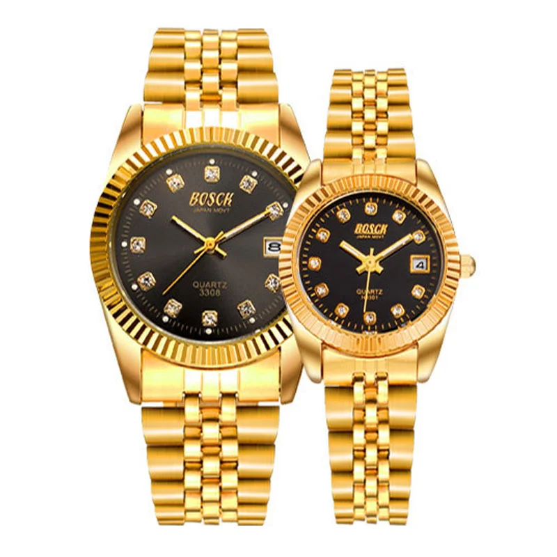 Relojes para amantes: relojes de pulsera de moda para parejas, relojes de lujo dorados para hombre y mujer, relojes de vestir para hombre.