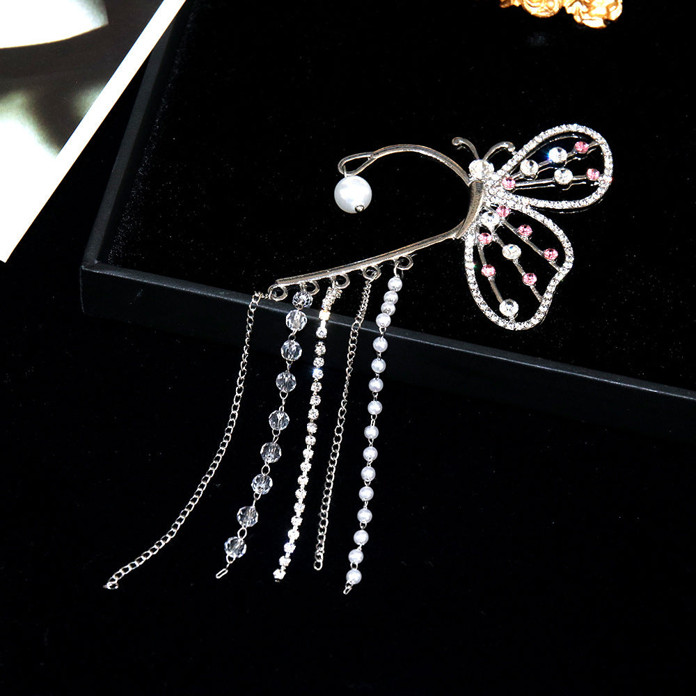 Pendientes de mariposa de cristal con colgante para mujer, aretes largos con borlas y cuentas de perla, joyería con clip, regalos