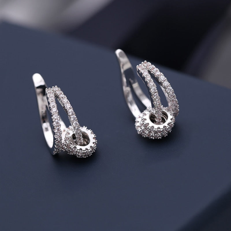 Pendientes de moda: pendientes coreanos de circonita cúbica redonda, piercings falsos, pendientes clásicos con dijes para mujer, joyería de moda.