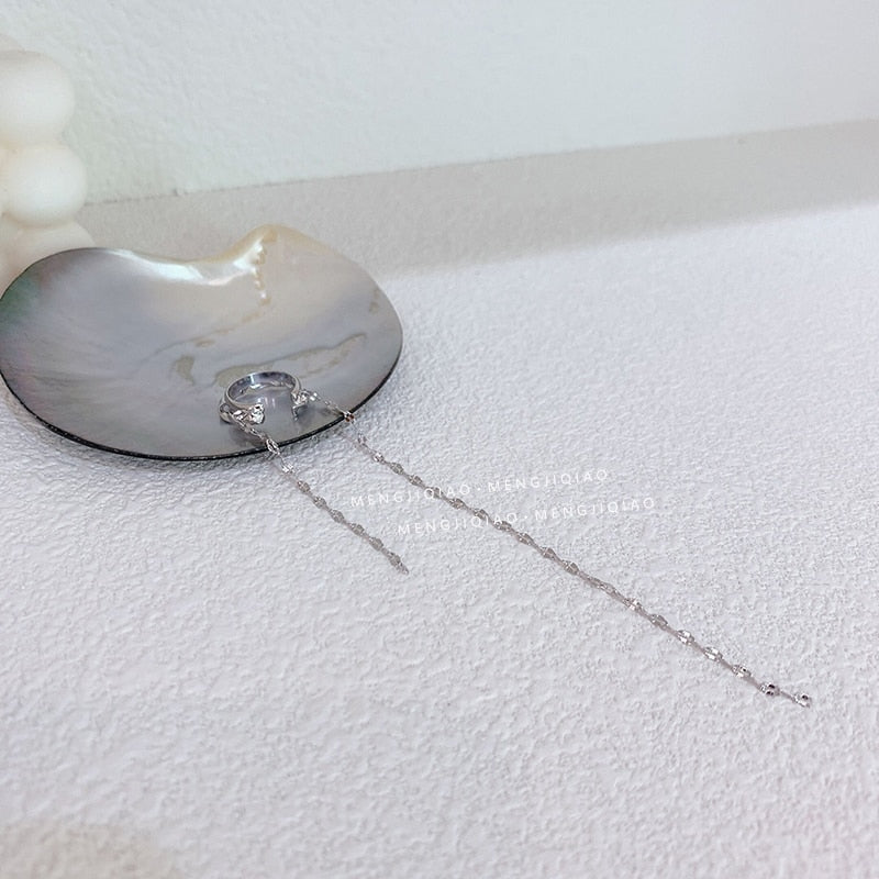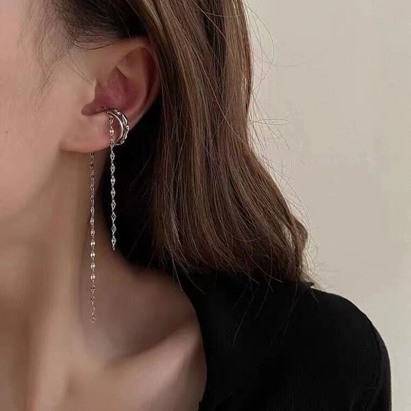 Pendientes de moda: pendientes de doble cadena con borlas, clip para la oreja para mujer y niña, pendientes largos sin perforaciones, regalo bohemio.