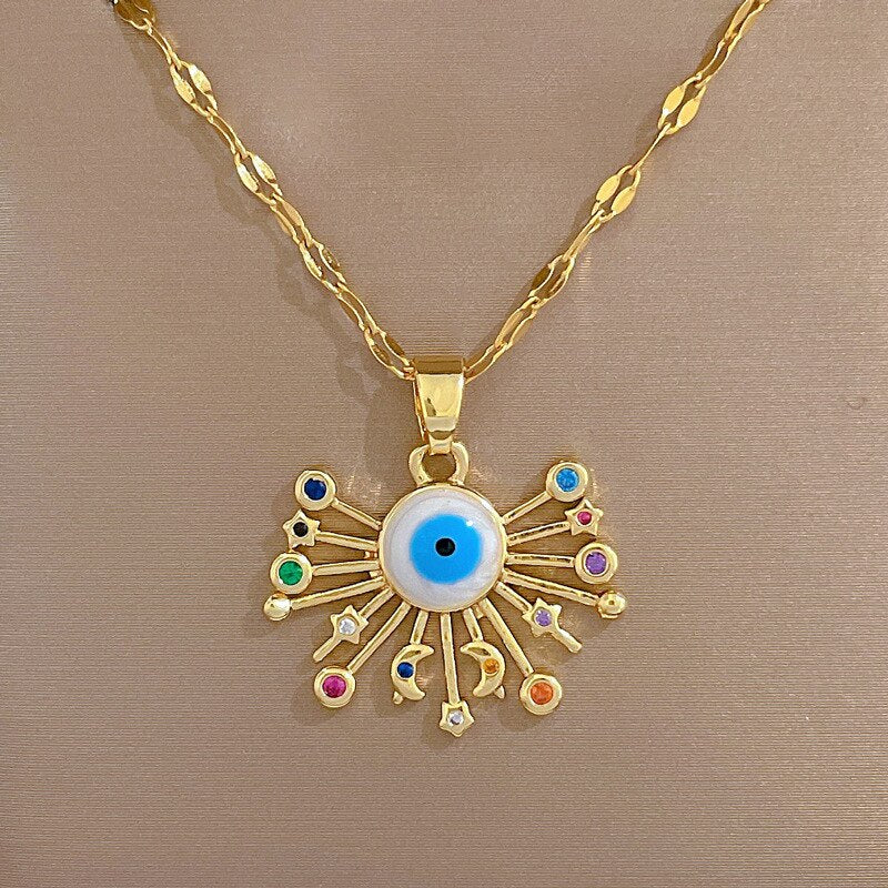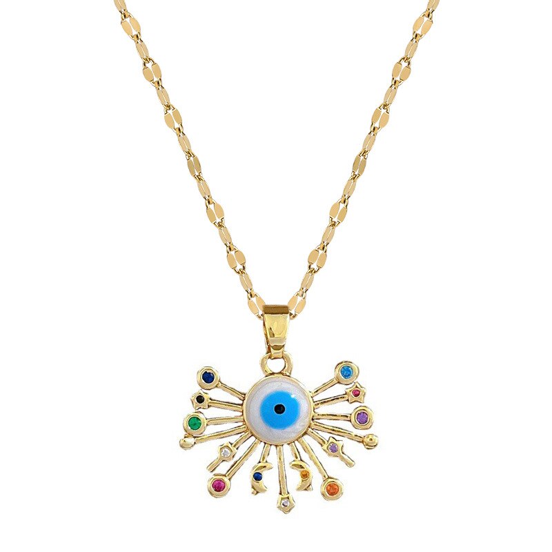 Collar de acero inoxidable 316L con colgante de ojo malvado para mujer, joyería de oro 585, con pestañas doradas y estética turca.