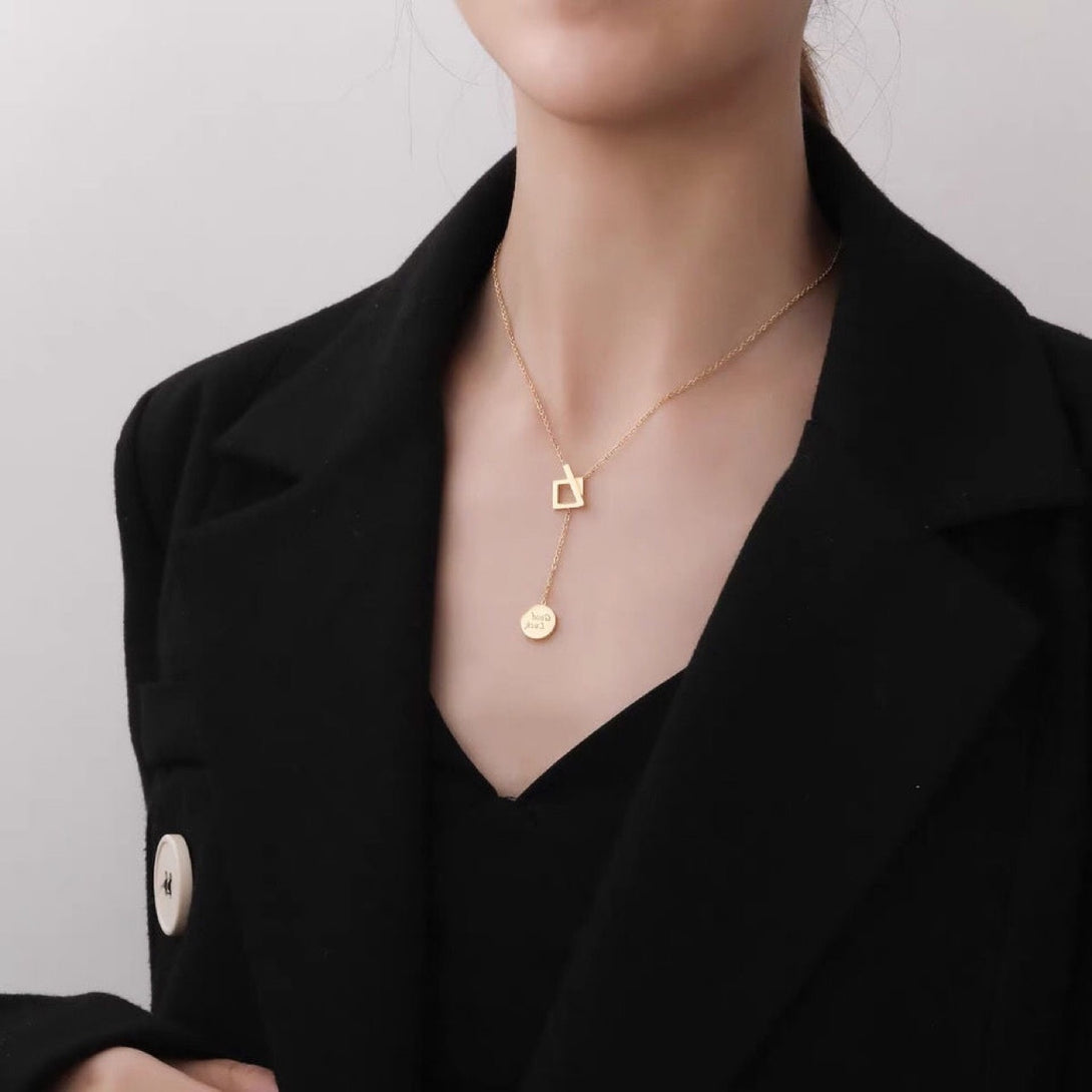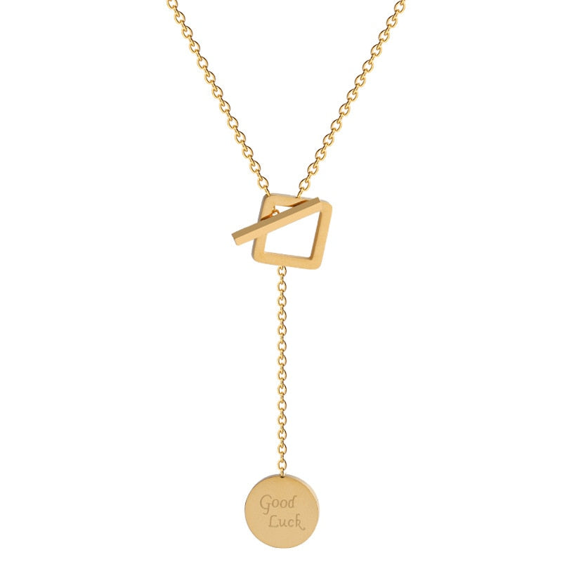 Joyería de oro 585 - Acero inoxidable 316L - Nueva joyería fina de moda con diseño geométrico cuadrado y redondo, cadena de amor, gargantillas y colgantes para mujer