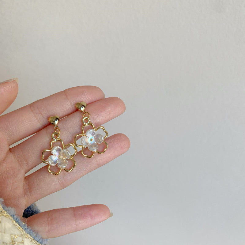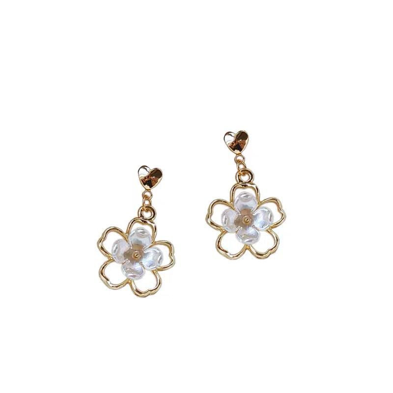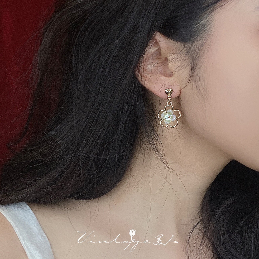 Pendientes de moda: pendientes de clip con forma de concha hueca francesa, temperamento simple, pétalos frescos, sin perforaciones para mujeres.