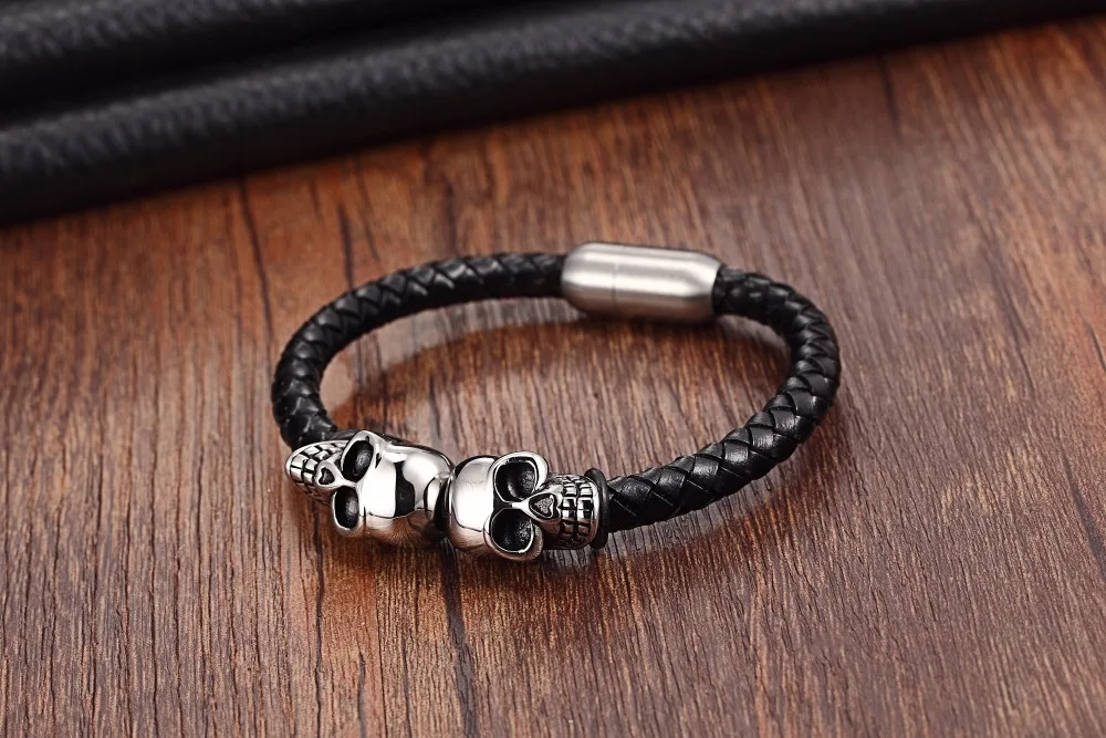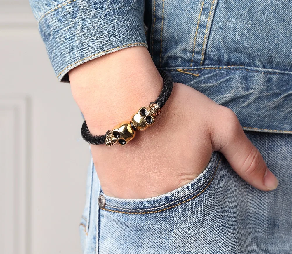 Pulsera de cuero - Pulseras y brazaletes de cuero genuino estilo punk con calavera para hombre, pulsera de moda para hombre, joyería con protección de color.