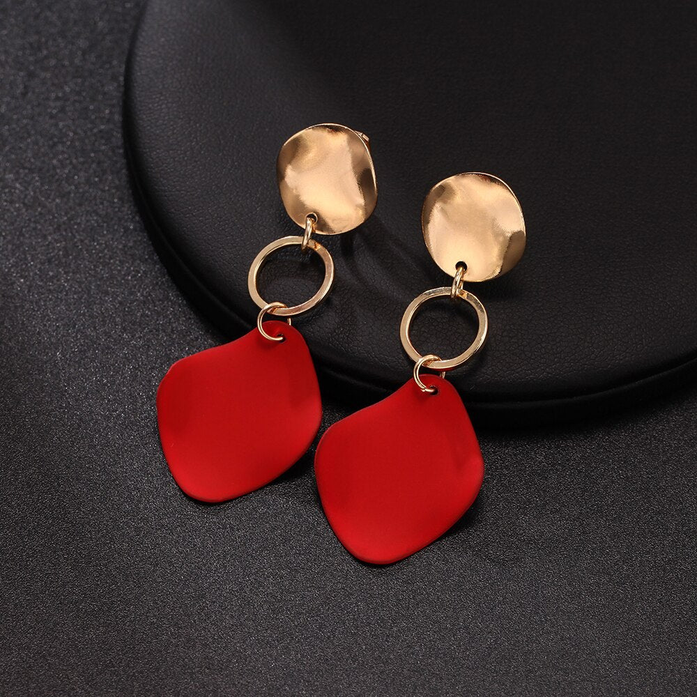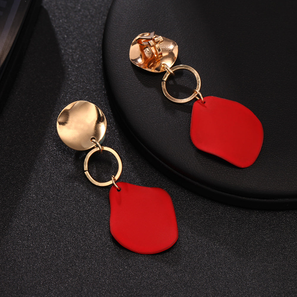 Pendientes de moda: pendientes geométricos con clip para mujer, estilo vintage, rojos, verdes y blancos, sin agujero, joyería coreana irregular.