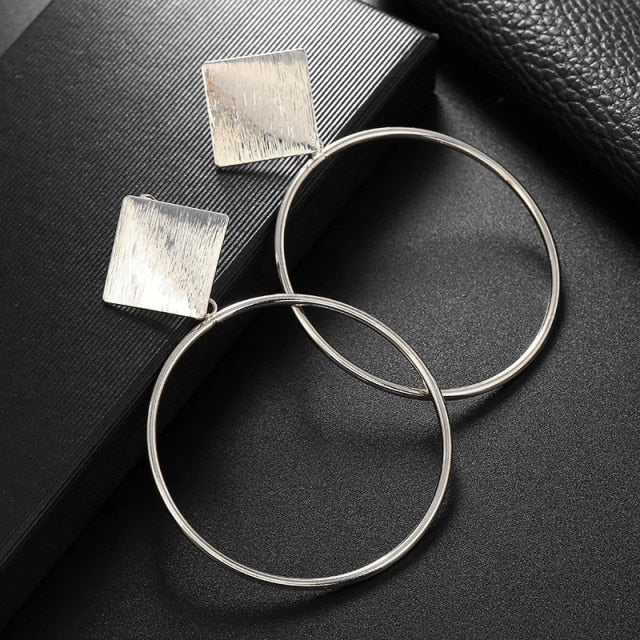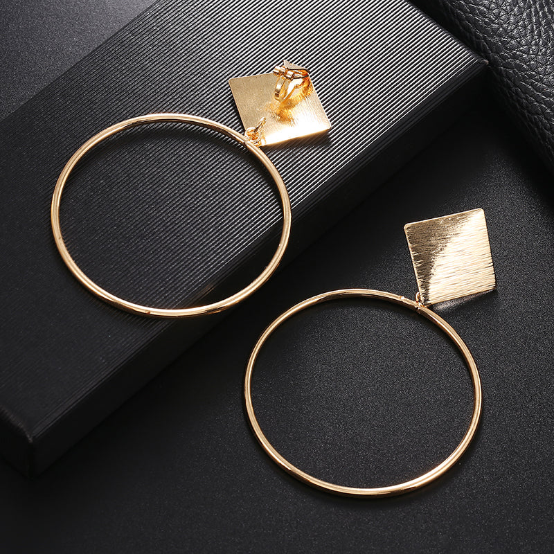 Pendientes de moda: pendientes geométricos redondos con clip, sin perforación, de metal, sencillos y grandes, para mujer, para fiestas, joyería minimalista de moda.
