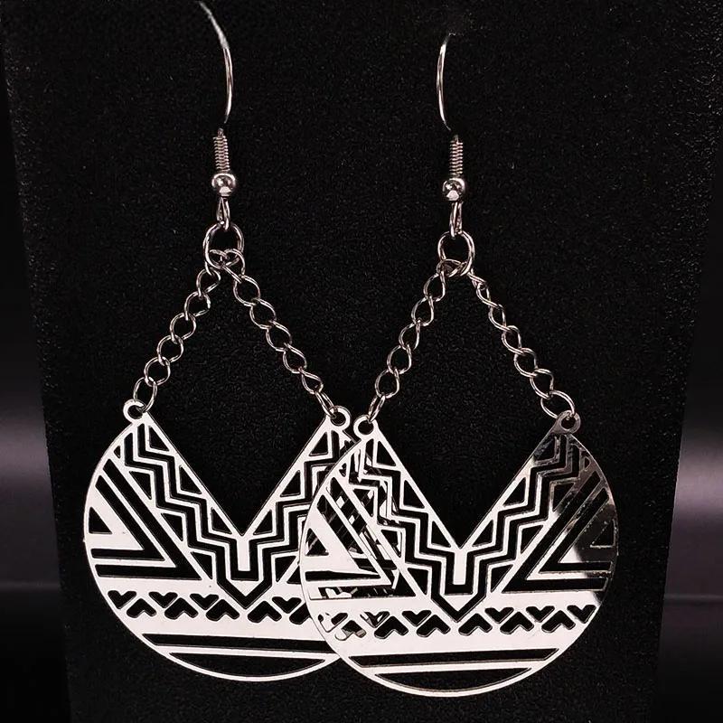 Pendientes colgantes geométricos de acero inoxidable de moda para mujer, color plata, aretes bohemios, joyería, aretes de mujer
