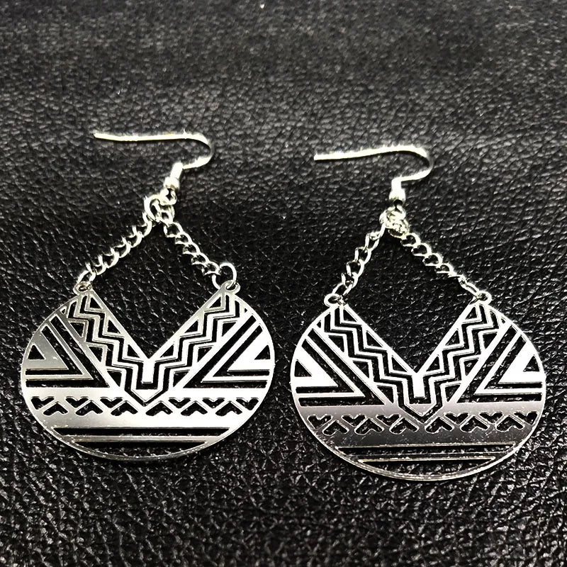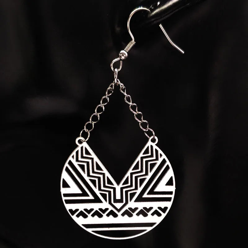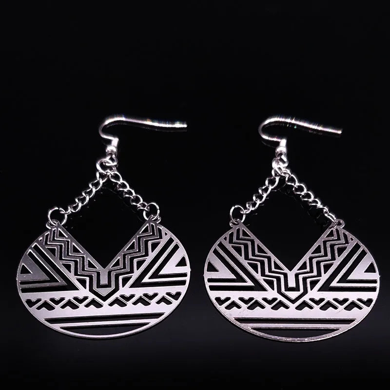 Pendientes colgantes geométricos de acero inoxidable de moda para mujer, color plata, estilo bohemio, joyería para mujer