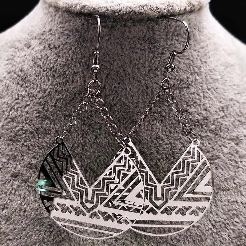 Pendientes colgantes geométricos de acero inoxidable para mujer, de estilo bohemio, color plata.