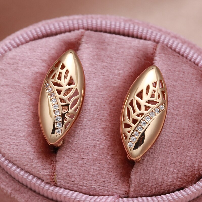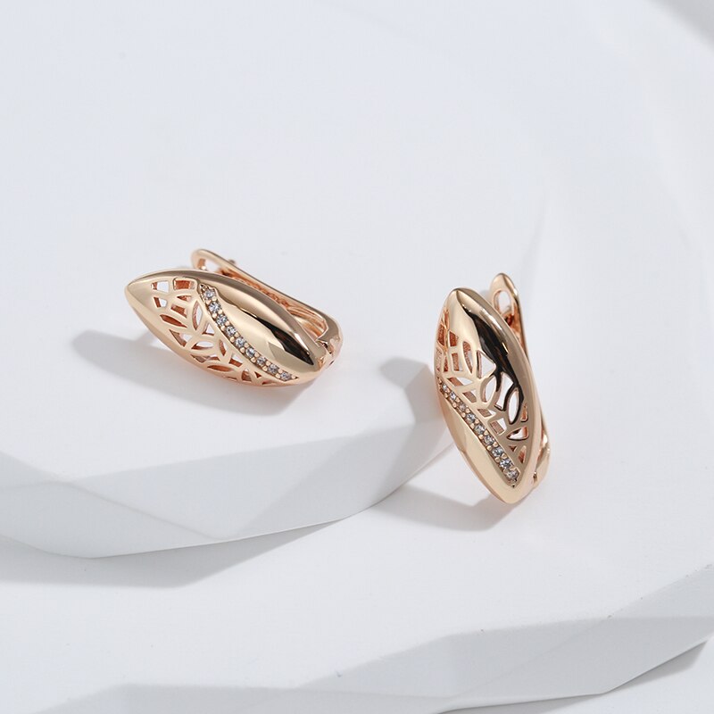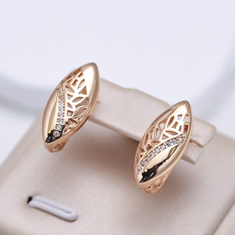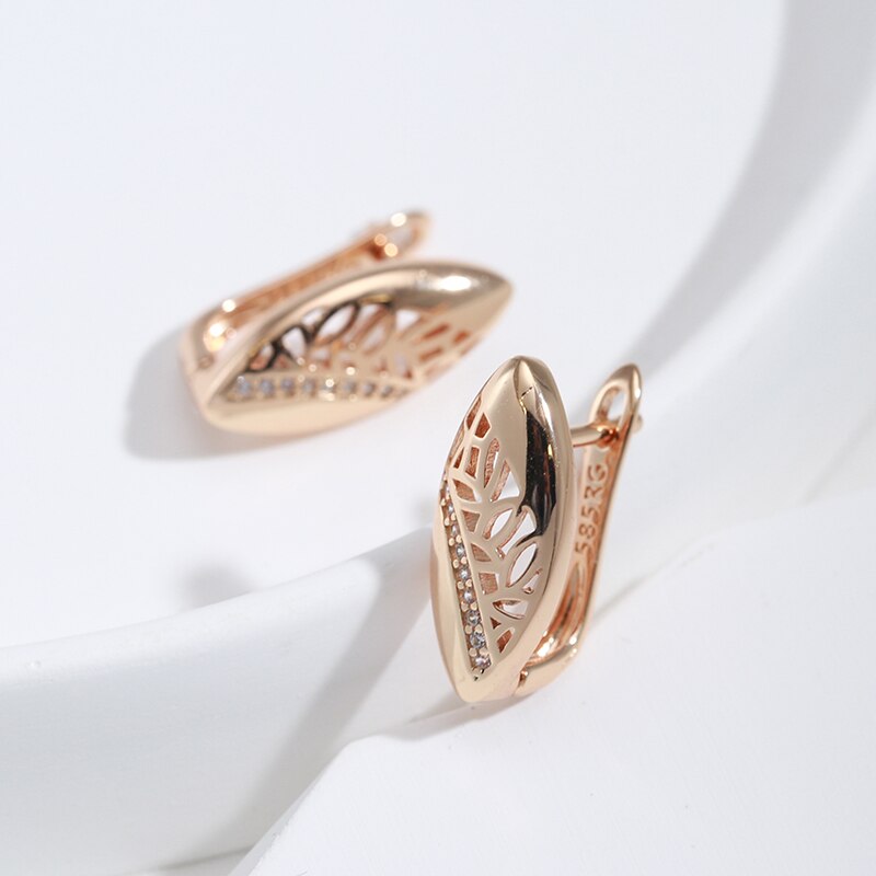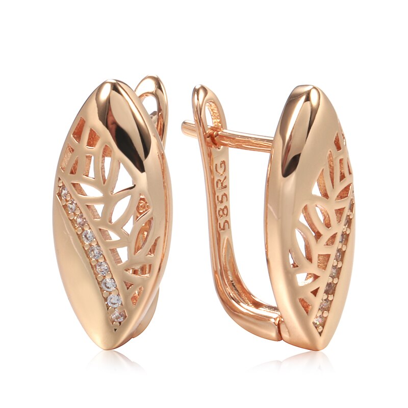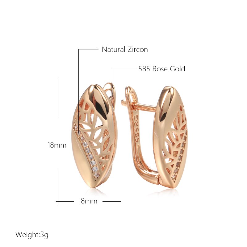 Pendientes de oro rosa 585 con circonitas brillantes para mujer, elegantes, simétricos, con curvas, para boda, piercings de aro, joyería dorada.