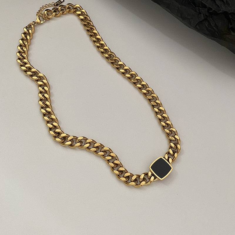 Joyería de oro 585 - Acero inoxidable 316L. Nueva joyería de alta gama con dijes cuadrados negros, cadena gruesa, gargantilla, pulsera, collar y colgantes para mujer.