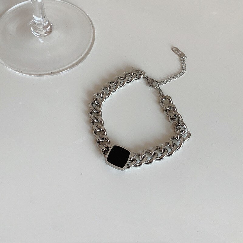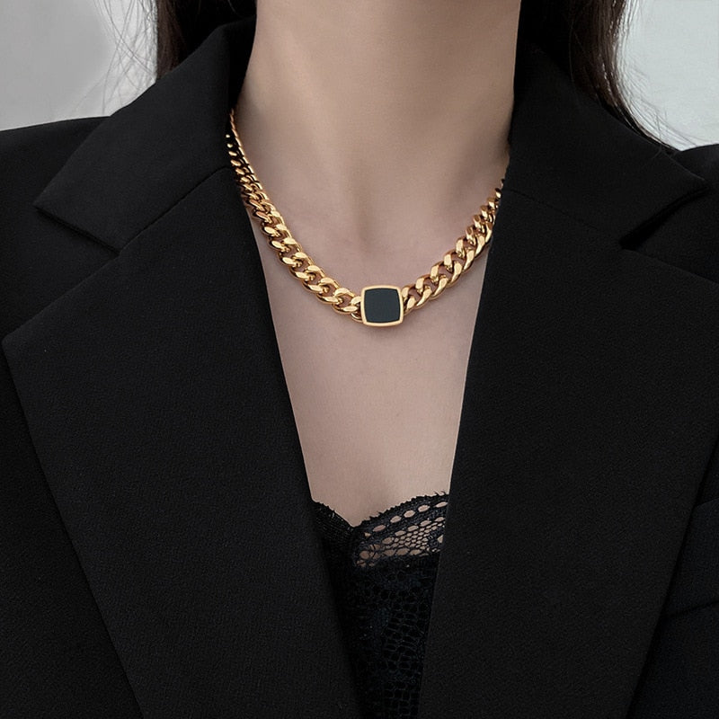 Gargantilla de cadena gruesa con dijes cuadrados negros, collares y colgantes para mujer