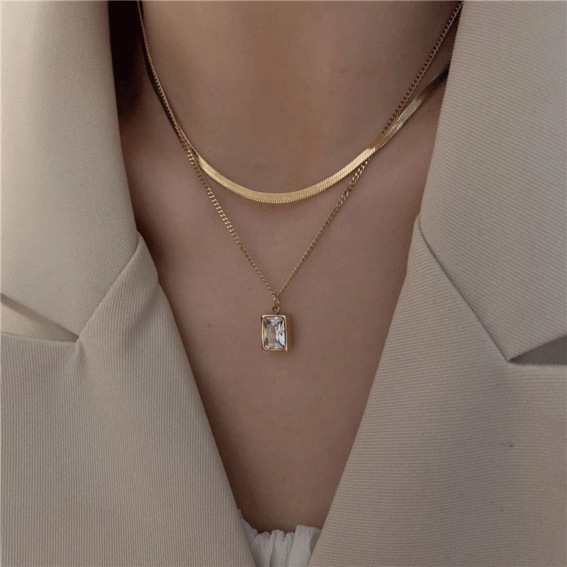 Collar con colgante de cadena y dije de circonita romboidal de alta gama para mujer.