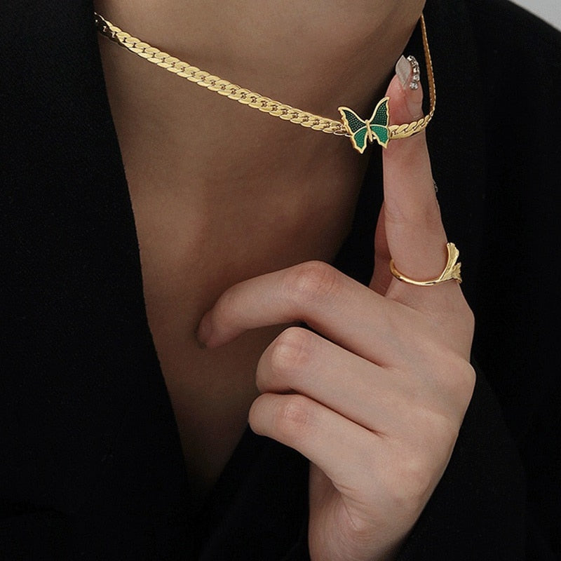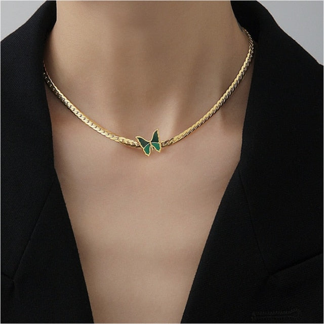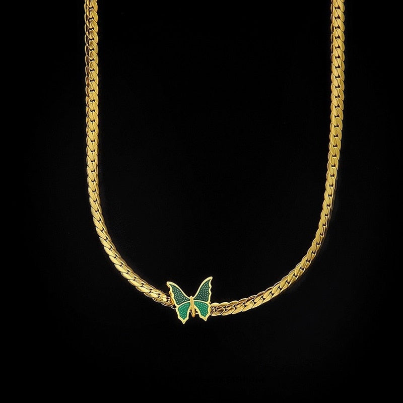 Collar de cadena gruesa con dije de mariposa verde soldada, joyería de alta gama de moda