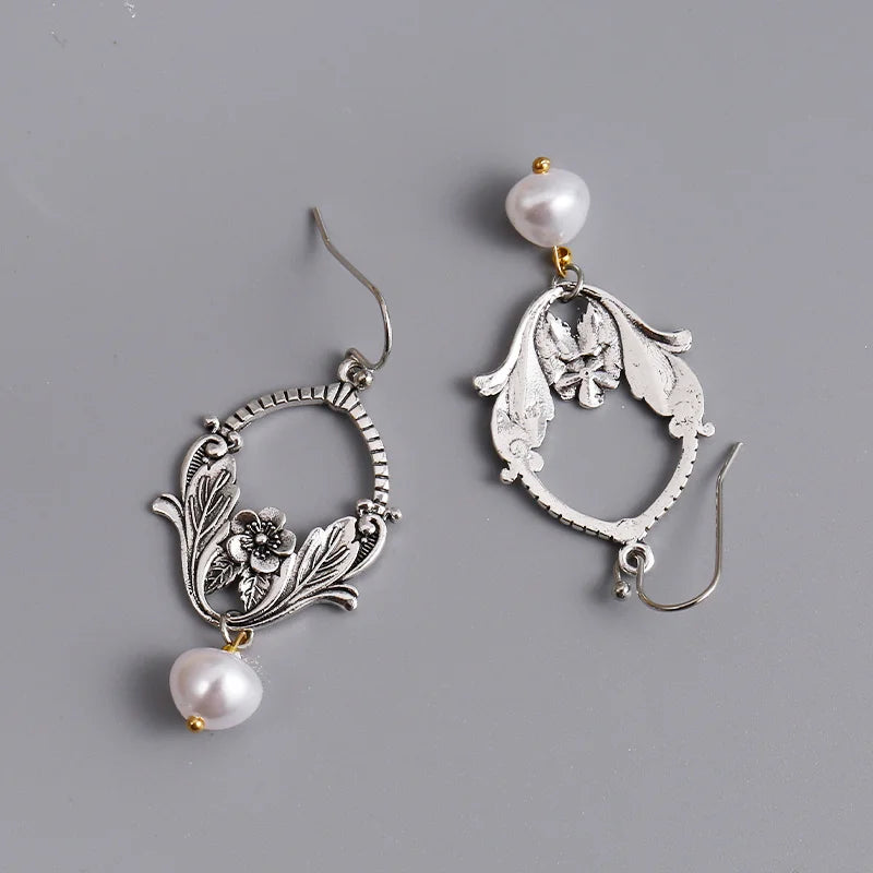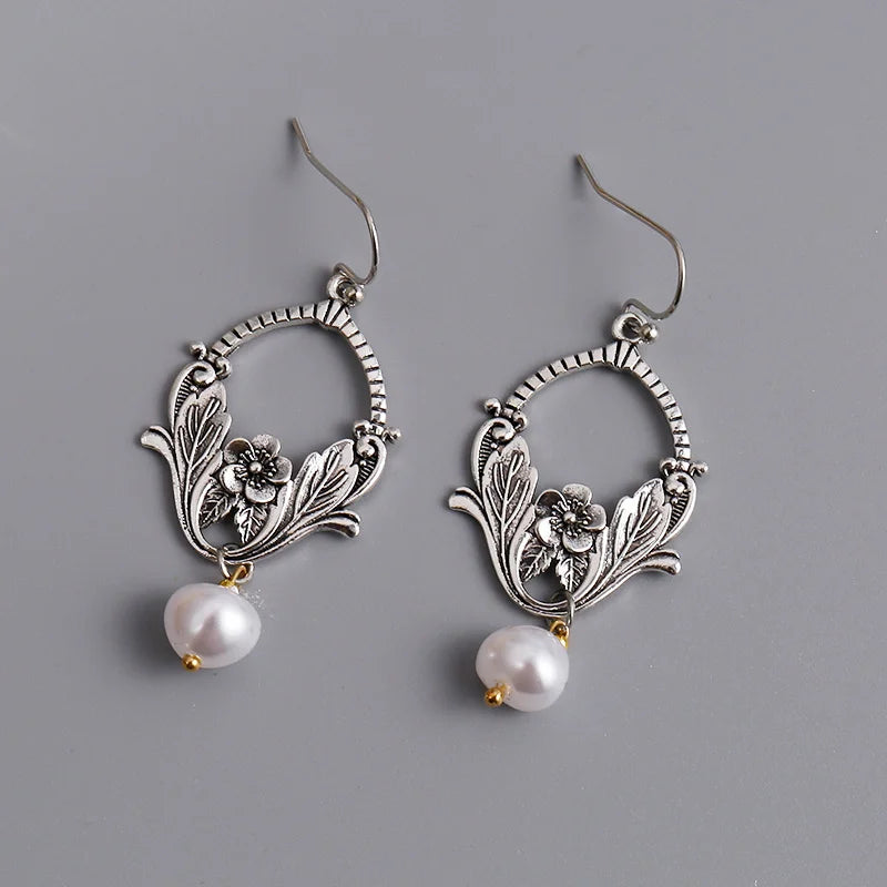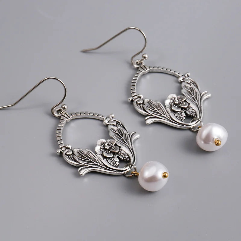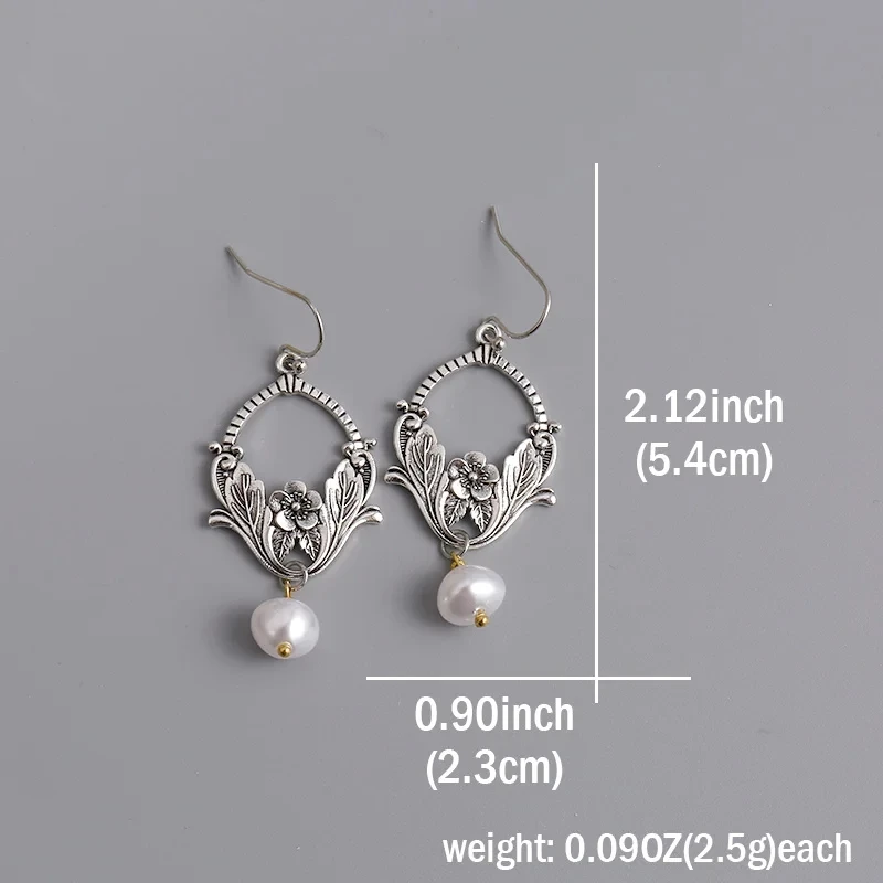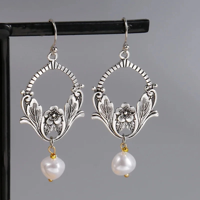 Pendientes colgantes de perlas de imitación de moda con gancho, exquisitos y encantadores, con hojas talladas y flores, joyería de boda para mujer.
