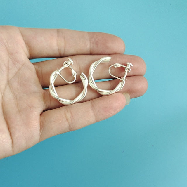 Pendientes de aro con clip, geométricos, redondos y circulares entrelazados para mujer