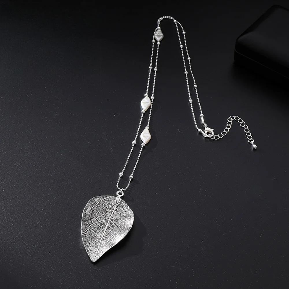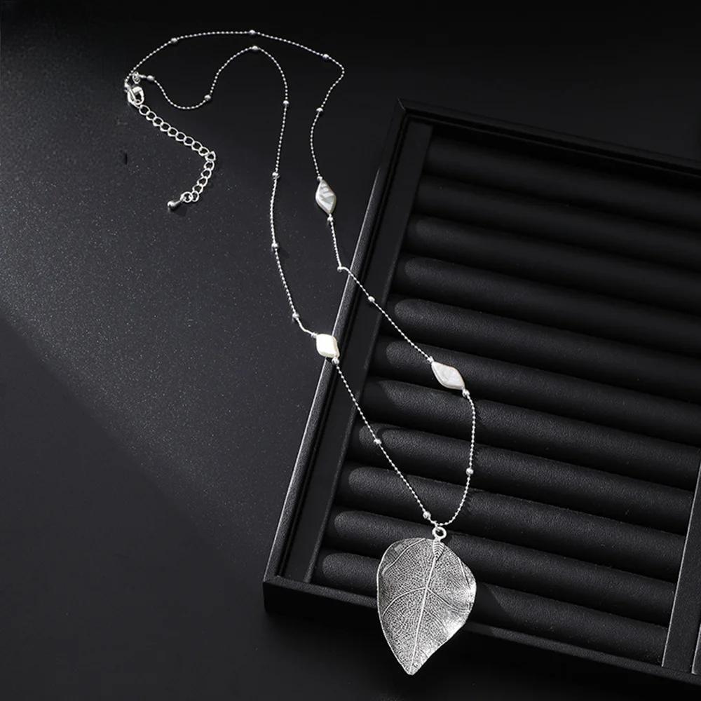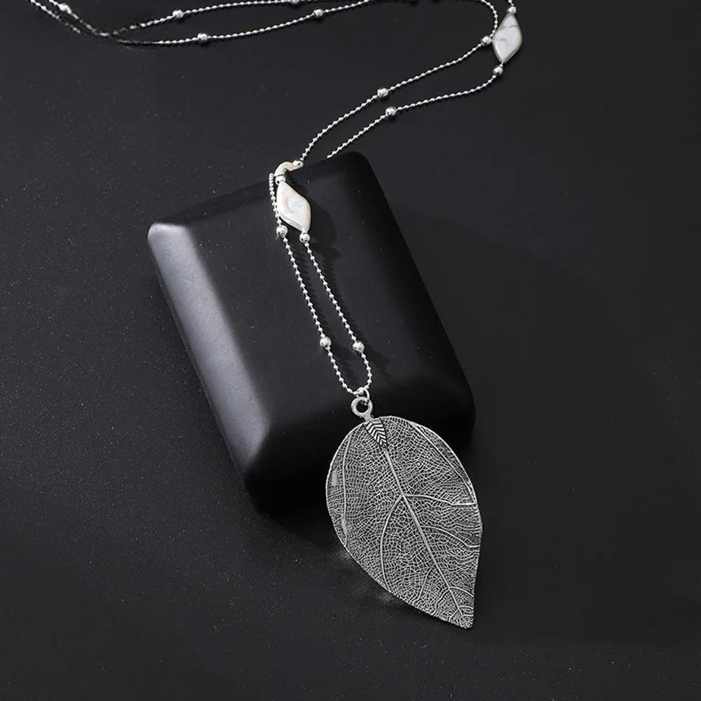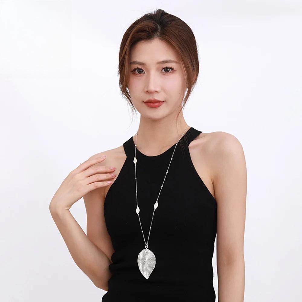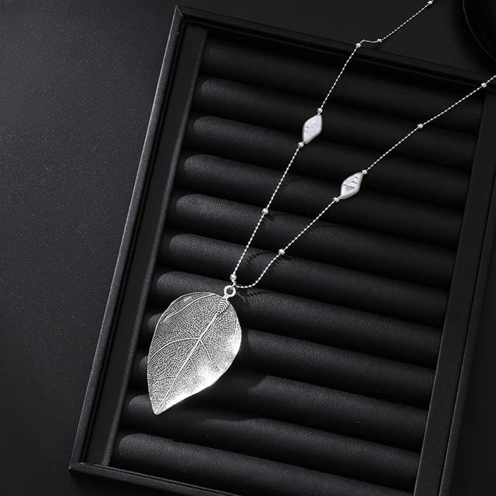 Collar de joyería de moda con cadena larga y diseño especial de hojas huecas, colgante.