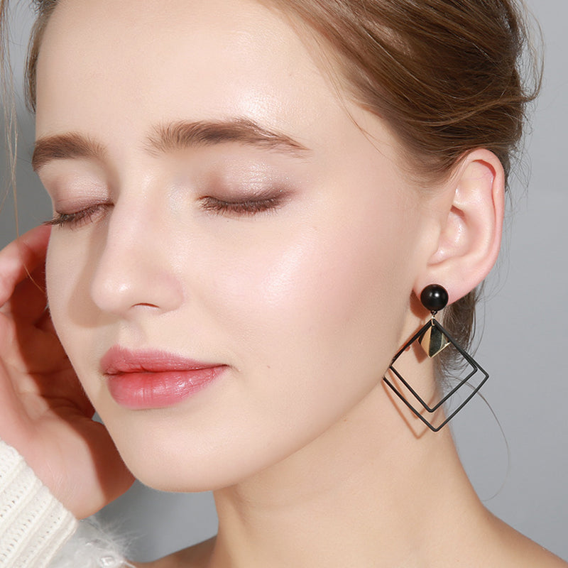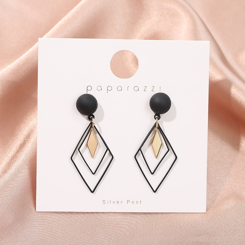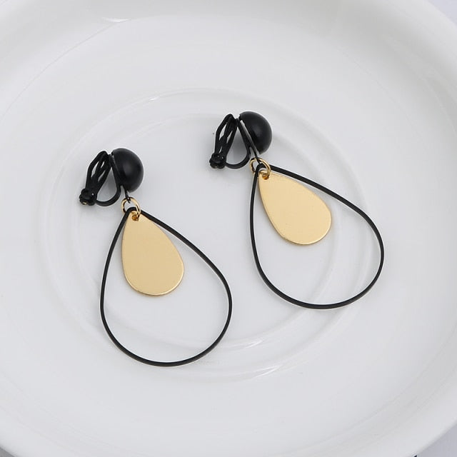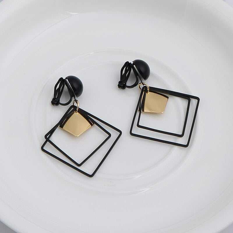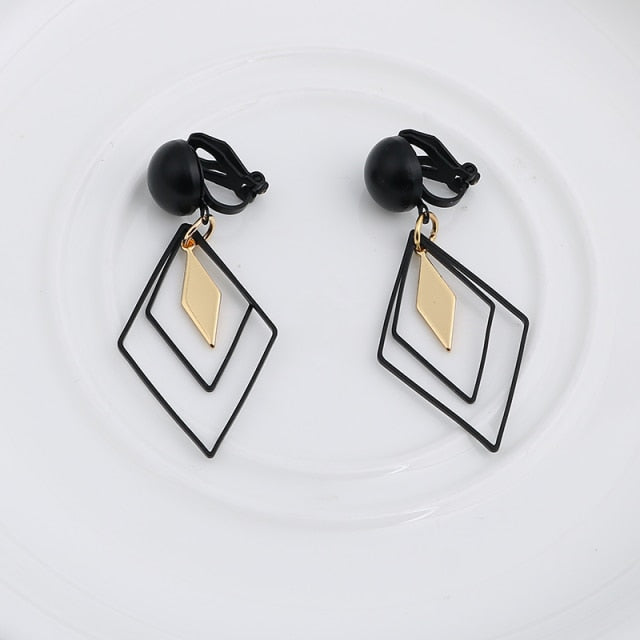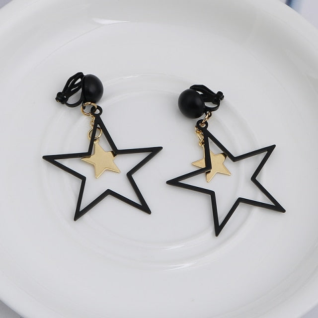 Pendientes de clip con forma de estrella y rombo de estilo coreano, color negro, sin perforaciones, para niñas, fiestas, bonitos, geométricos, sencillos, sin agujero.