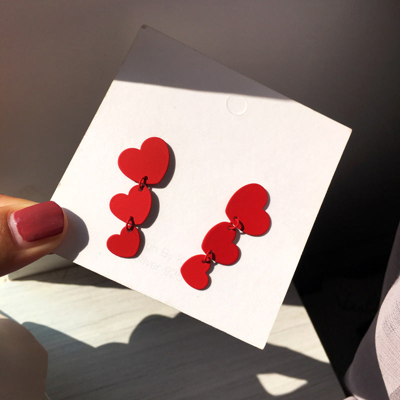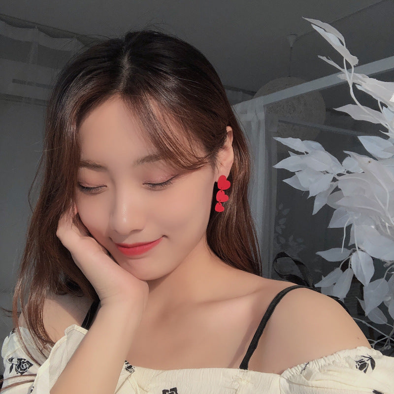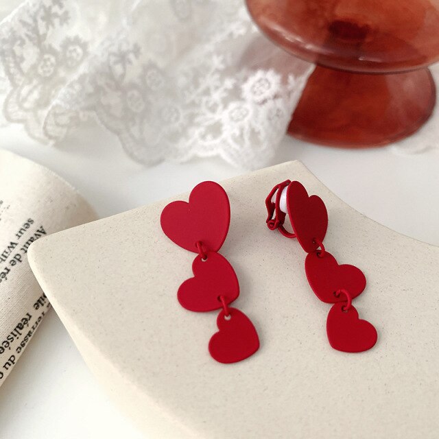 Pendientes de moda: estilo coreano, con forma de corazón, vintage, con forma de corazón rojo, sin perforar, para mujer y niña, regalo de joyería.