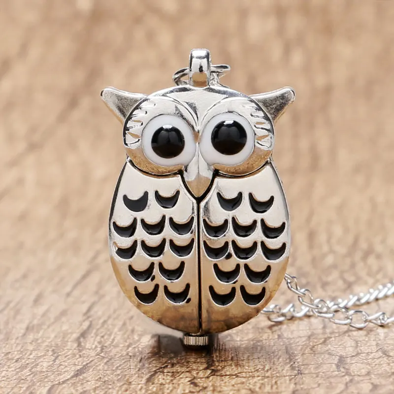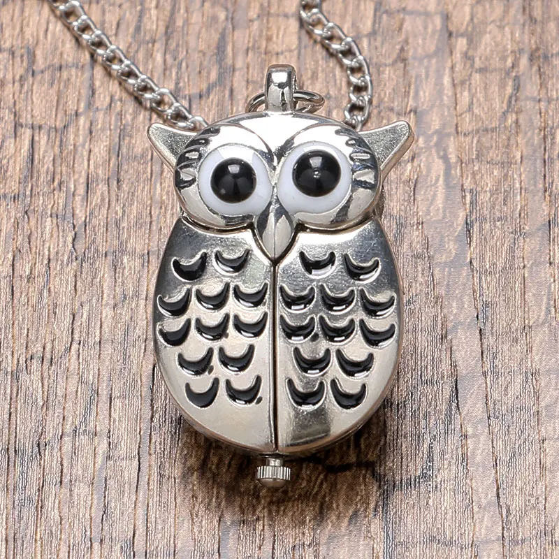 Relojes de bolsillo y de bolsillo: relojes de bolsillo con forma de búho, collar con colgante de cuarzo, el mejor regalo para niños y niñas.