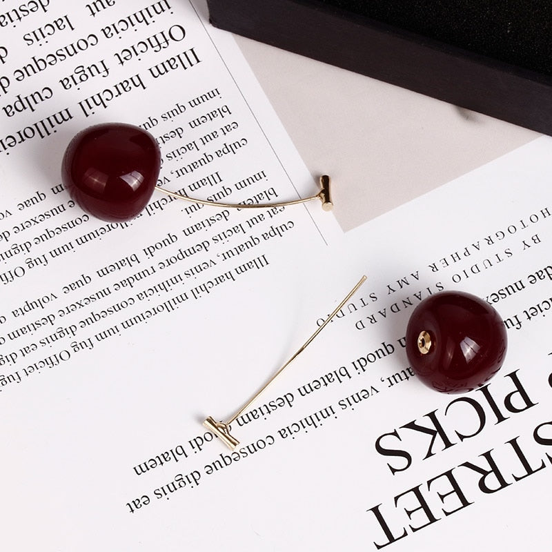 Nuevos pendientes de cereza con forma de oreja larga de moda europea y americana con diseño de frutas, pendientes de dama