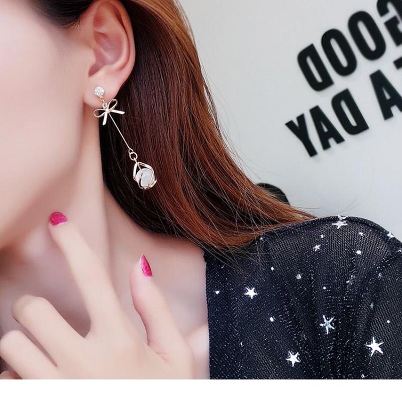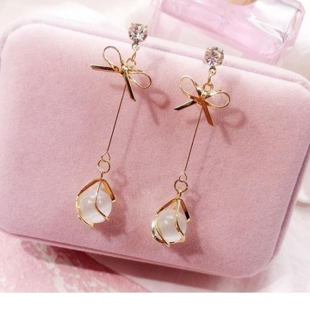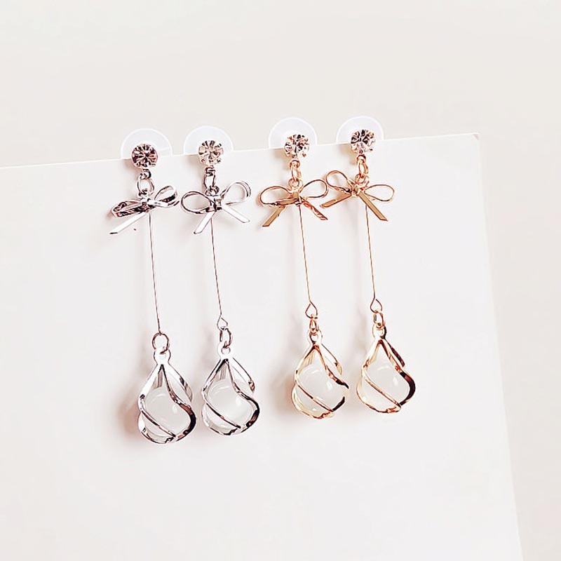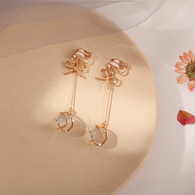 Pendientes largos de clip con diamantes de imitación dorados de moda, sin perforar