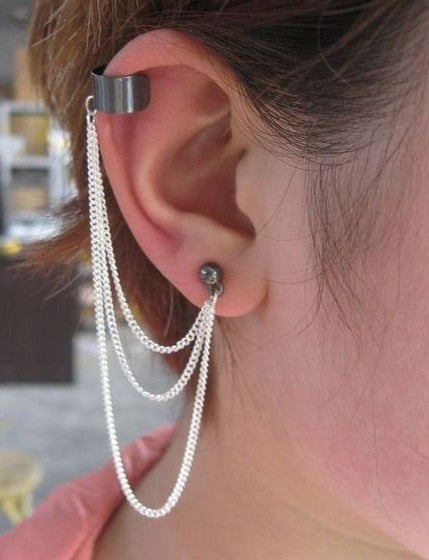 Pendientes de moda: aretes largos con borlas y diseño de puños de oreja con pinchos para mujer, joyería punk con tatuajes, joyería única con personalidad, aretes vintage.