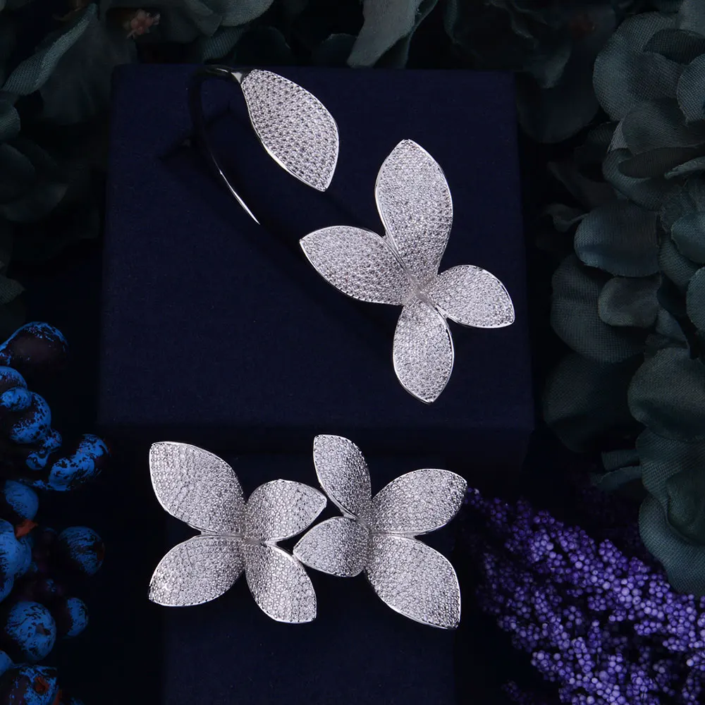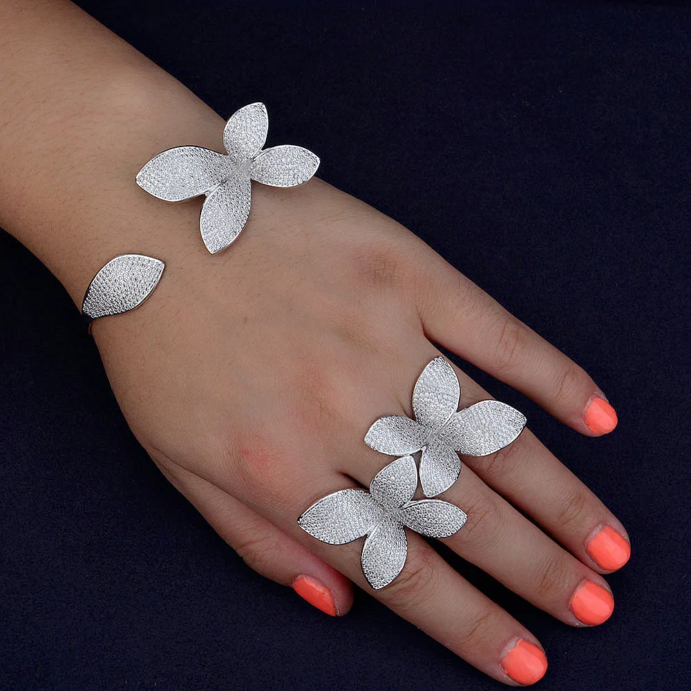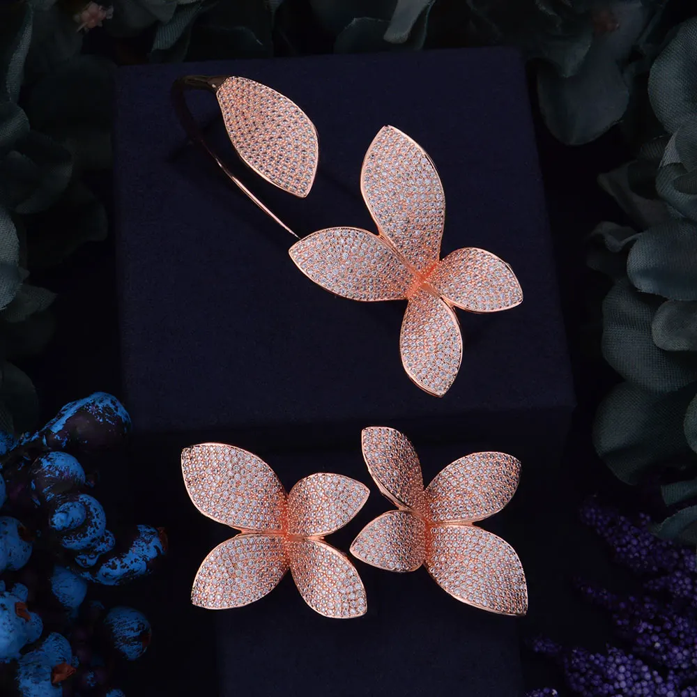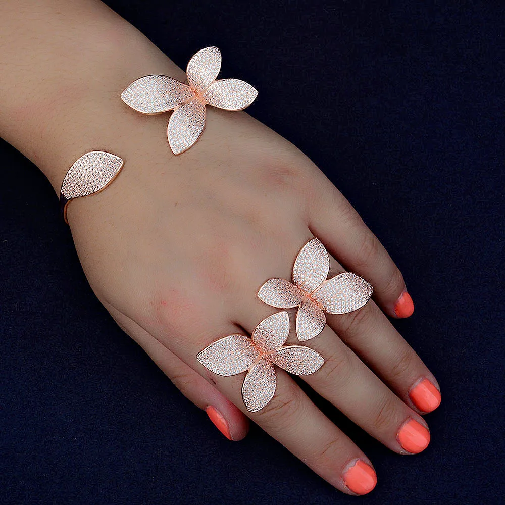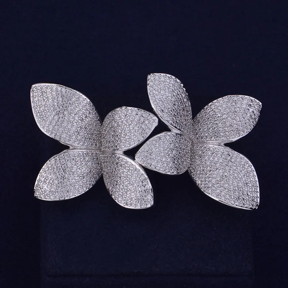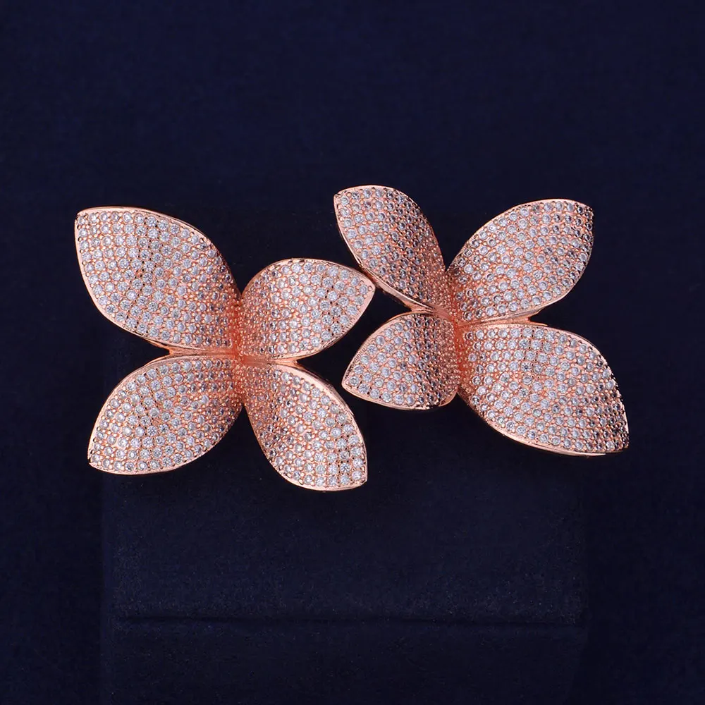 Anillo baguette de circonita cúbica AAA con diseño de hoja de flor superbrillante de lujo para mujer.