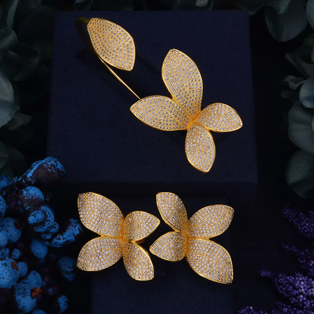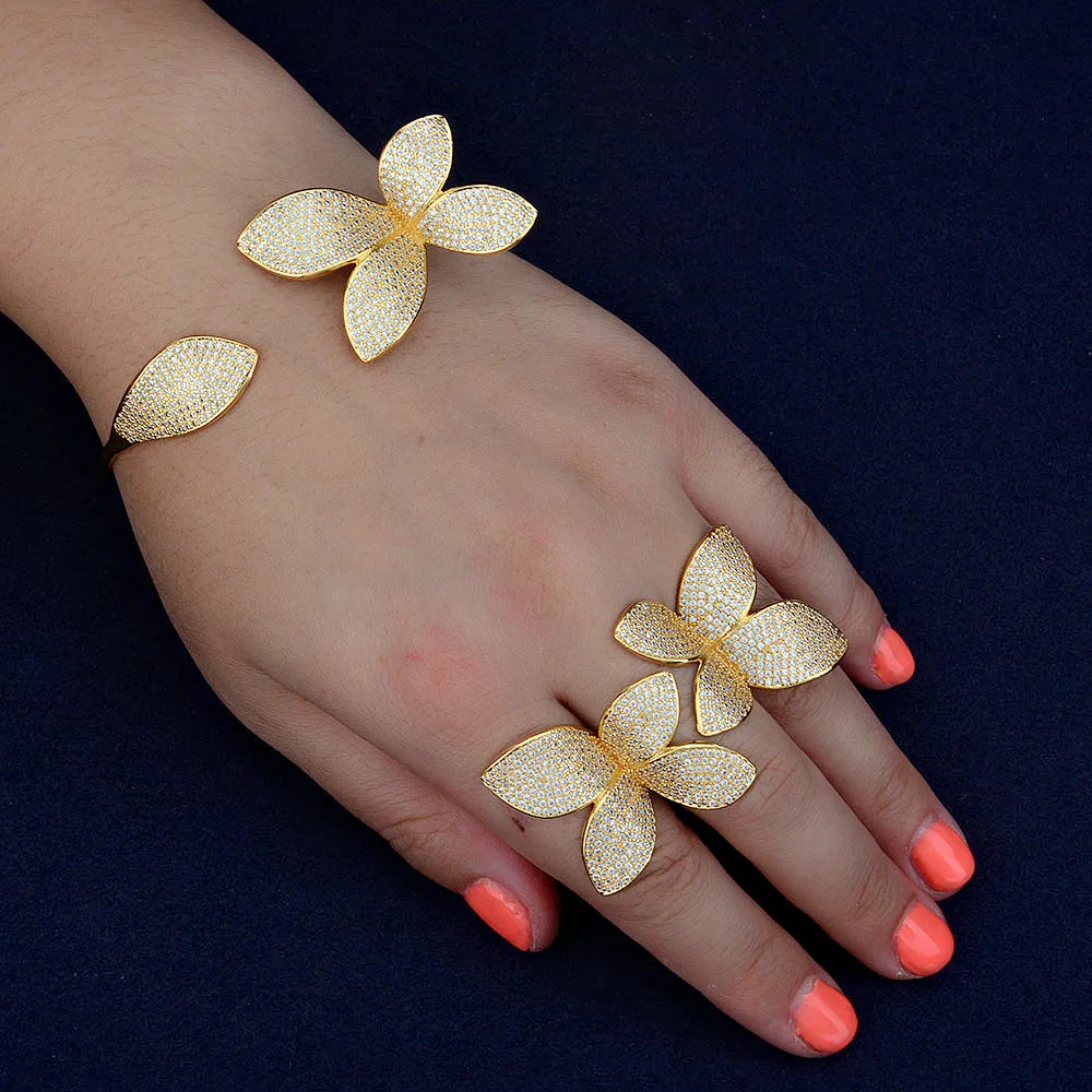Material: Blanco / Chapado en oro + Diamante de circonita cúbica 100% AAA