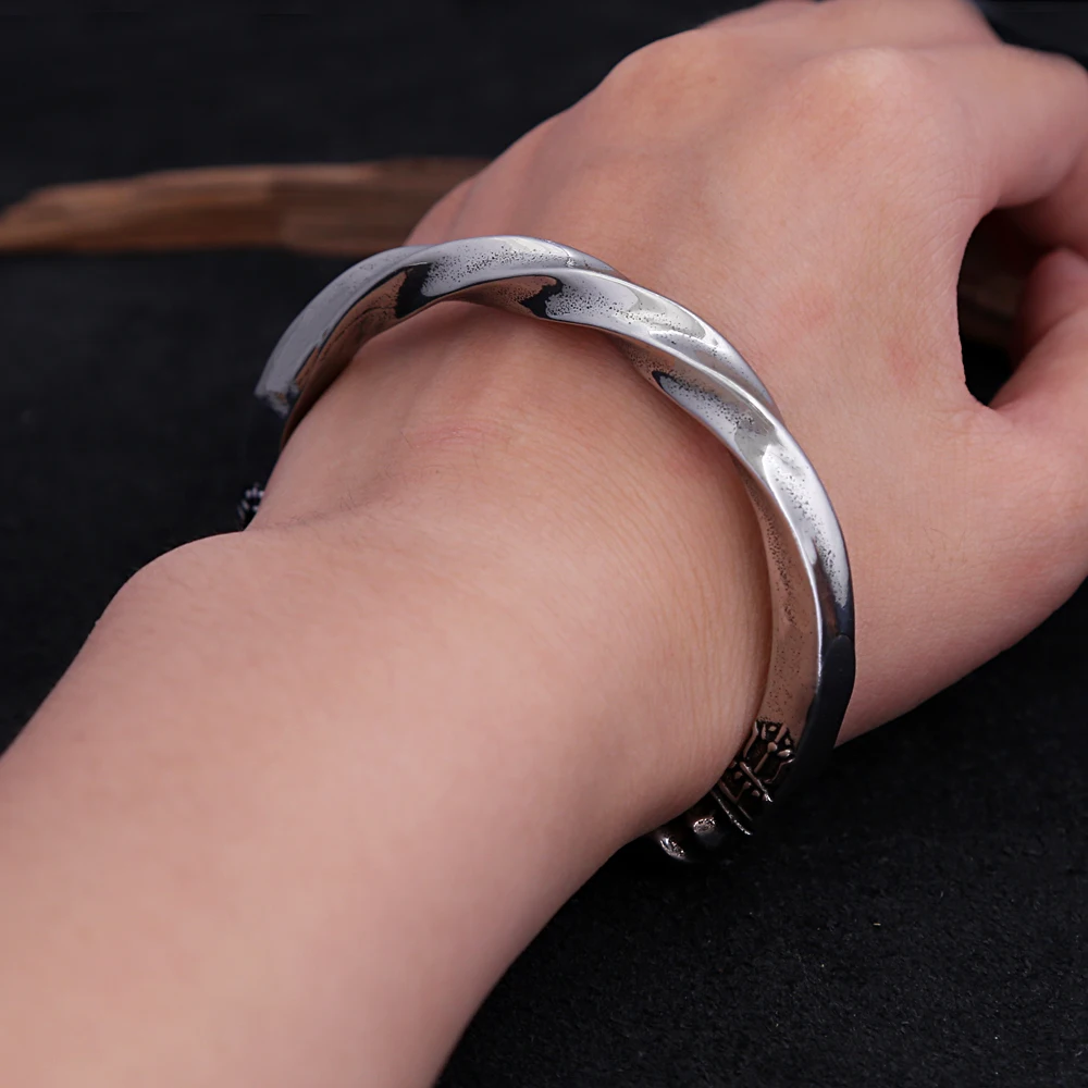 Nombre: Pulsera de anillo giratorio de acero inoxidable retro de moda con apertura de herradura creativa para hombres y mujeres, pulsera de joyería punk al por mayor
