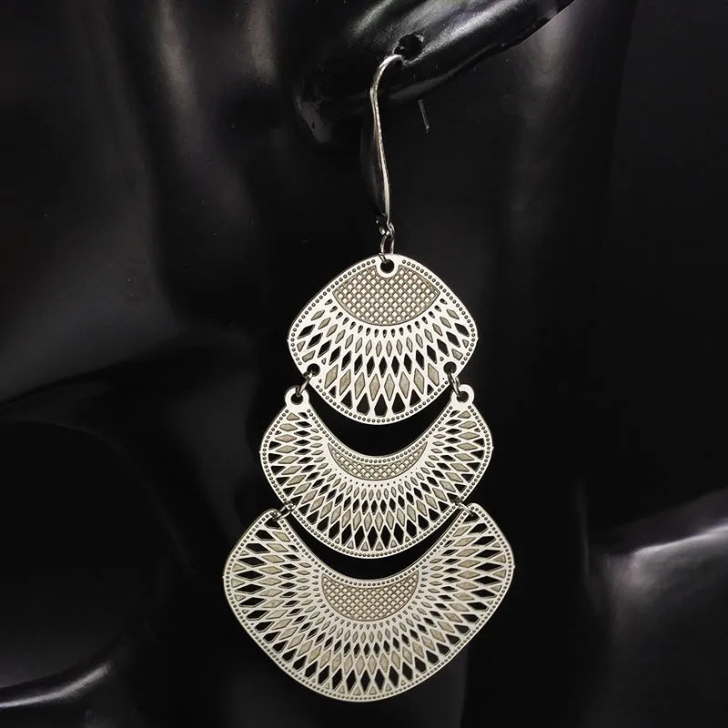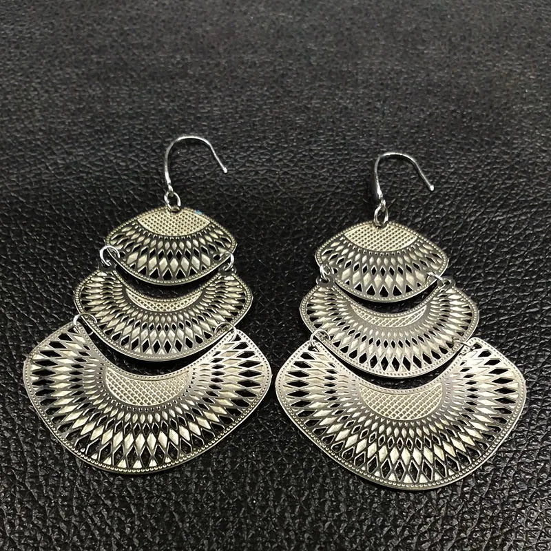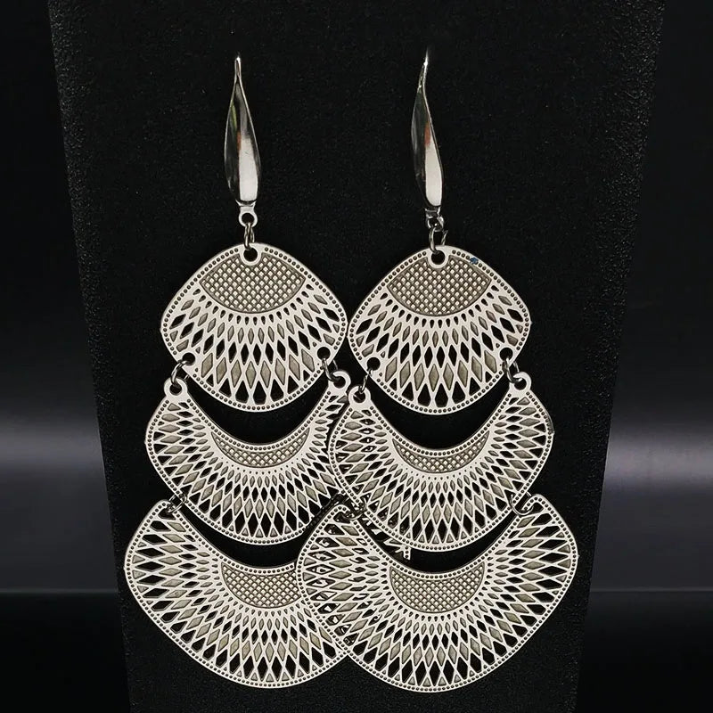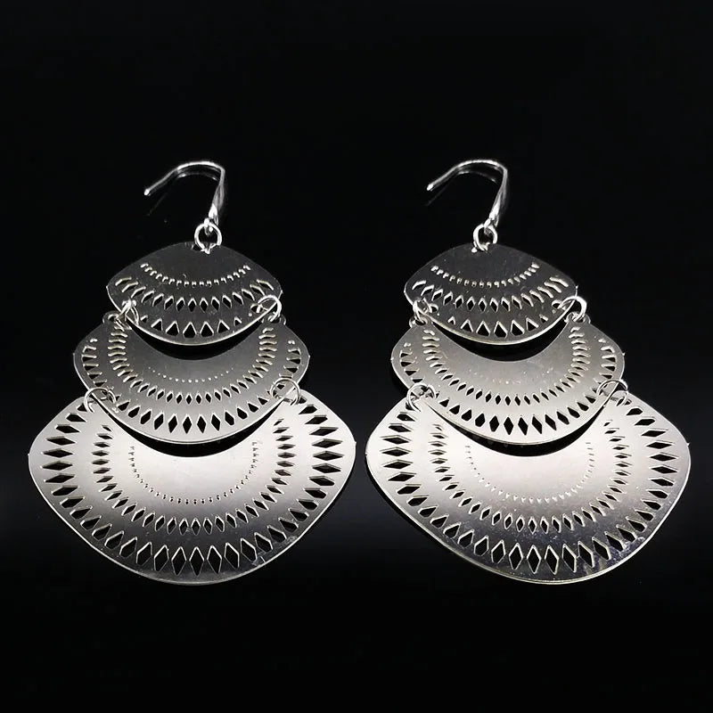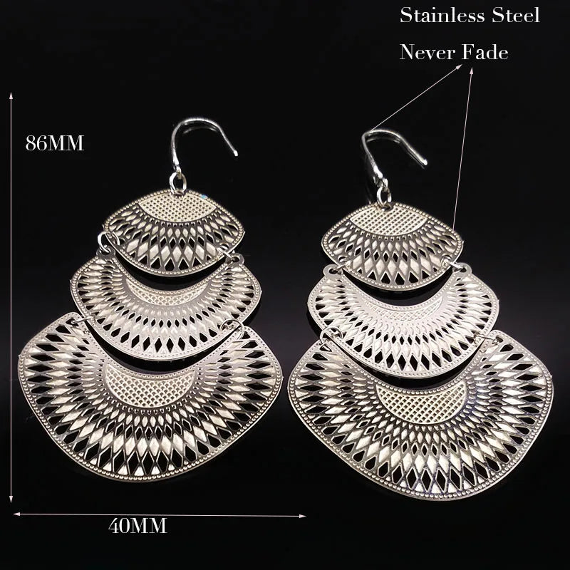 Pendientes llamativos de acero inoxidable en color plateado para mujer, grandes y largos, estilo étnico, joyería para mujer