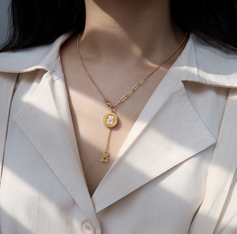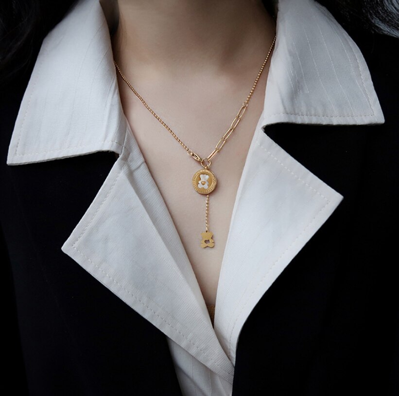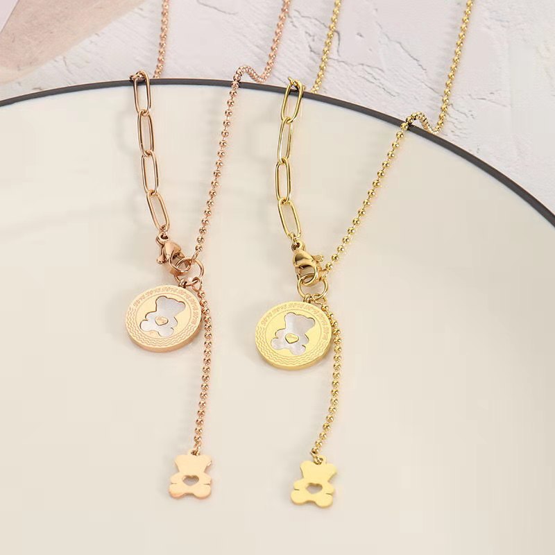 Collar con colgante de osito de imitación de acero de titanio y oro 585, ideal para fiestas de chicas, estilo hip hop rock, ideal como regalo.