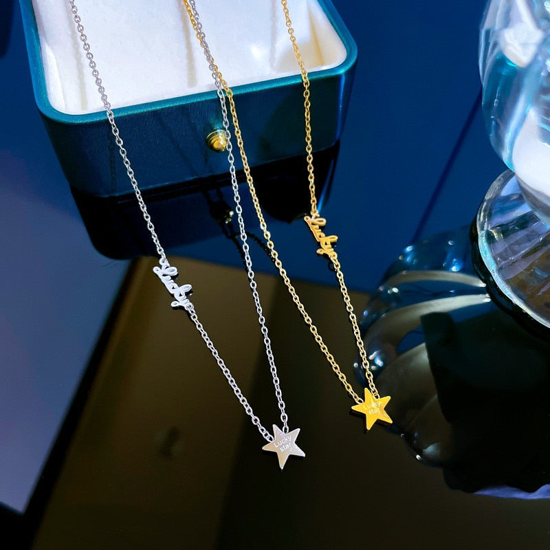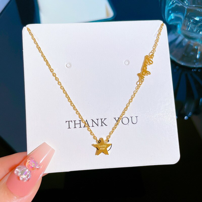 Joyería de oro 585 - Acero de titanio, nueva moda, elegante y delicado collar con letras de estrella, joyería para damas mayores, regalo de cumpleaños.