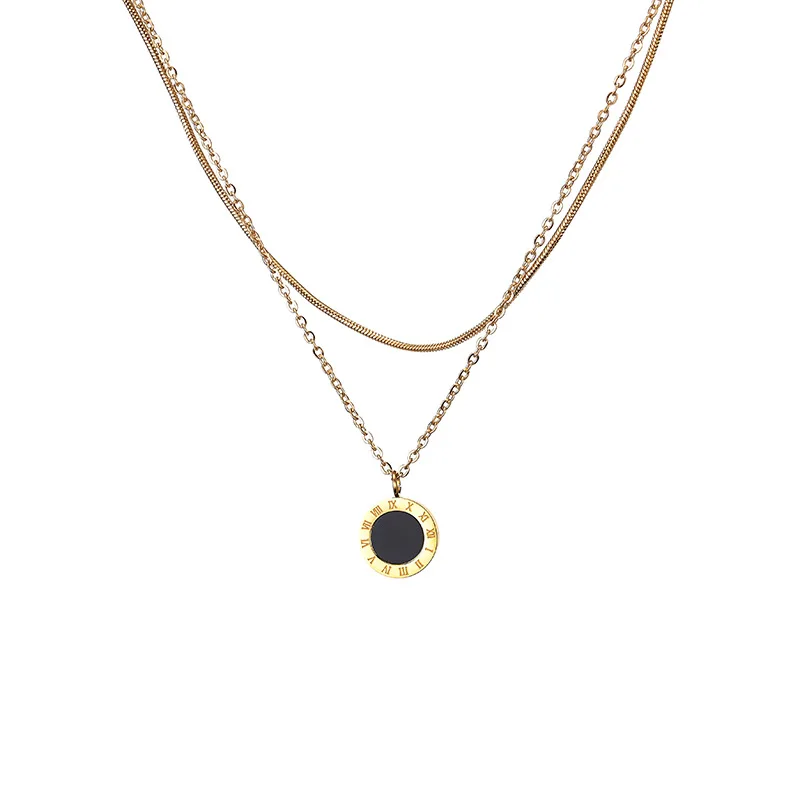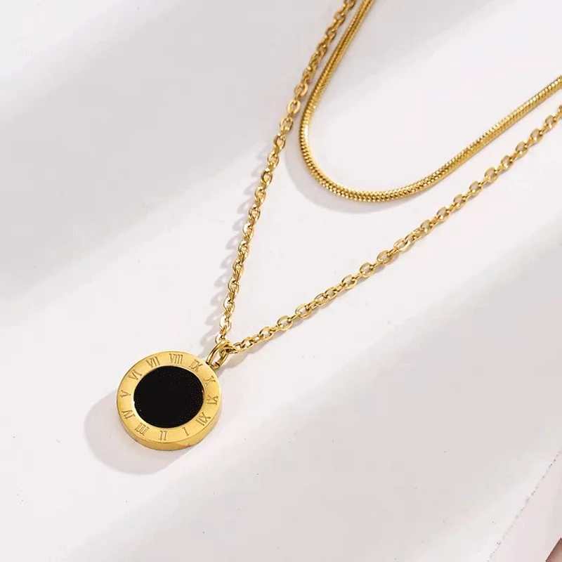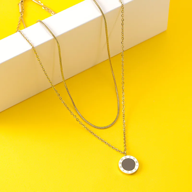 Joyería de oro 585 - Acero inoxidable 316L, nueva moda, joyería de lujo, collar gargantilla de cadena con dijes de números romanos redondos de 2 capas para mujer