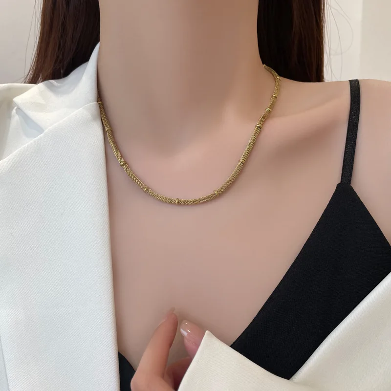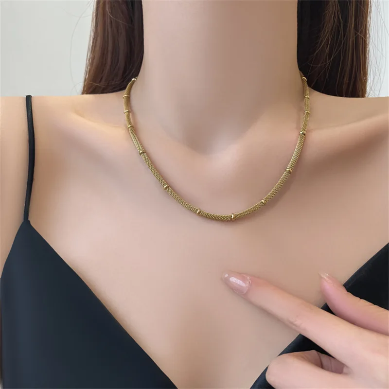 Joyería de oro 585, acero inoxidable 316L, nueva moda, joyería de lujo, minimalismo, cuentas, dijes de soldadura, cadena de serpiente, gargantilla, collares, colgantes para mujer.