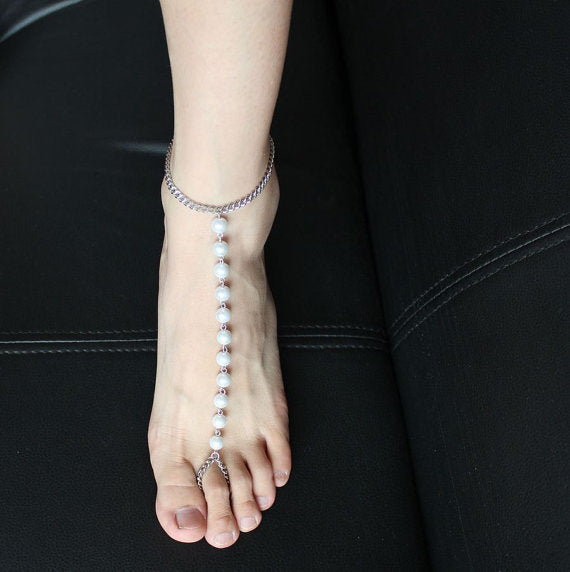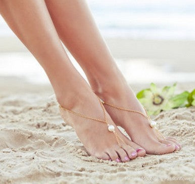 Tobillera de moda para mujer, con perlas de imitación, para playa, sandalias descalzas, cadena para el tobillo.